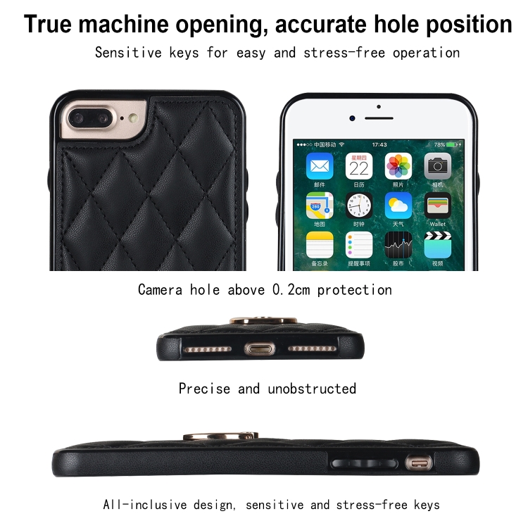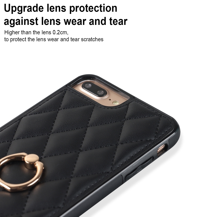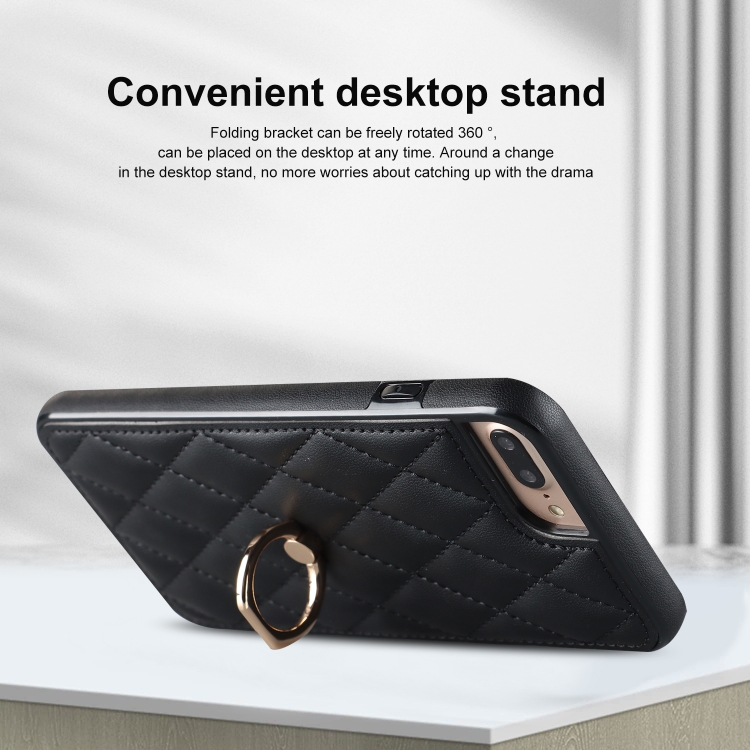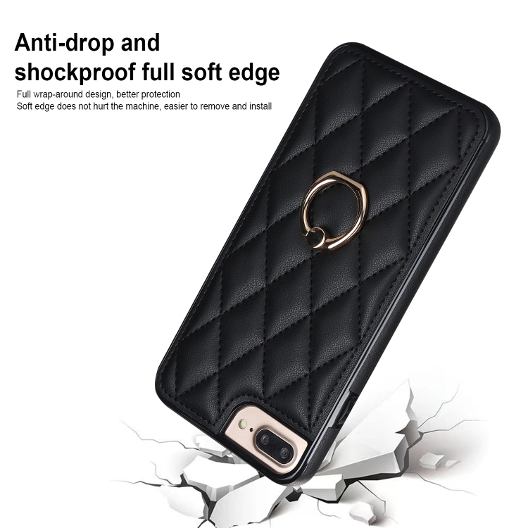 Estuche de teléfono iPhone 7 Plus 8 Plus Cuero Pu Rómbico con soporte para anillo (Negro)