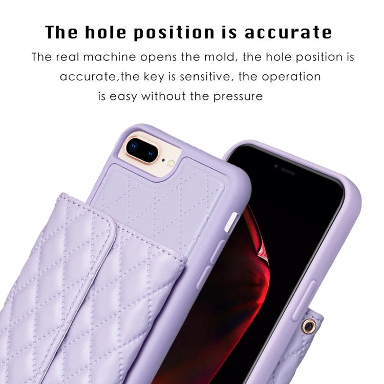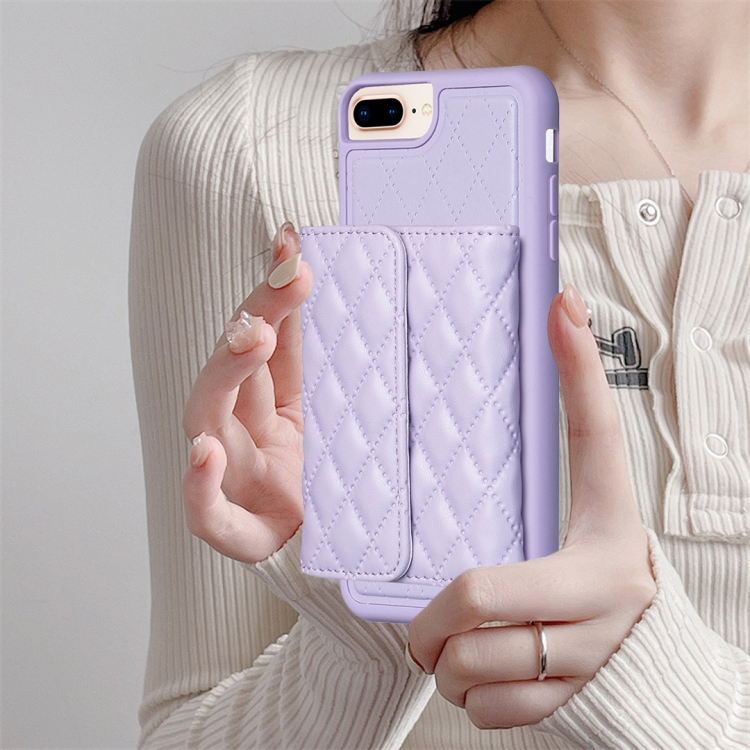 Estuche de teléfono iPhone 7 Plus 8 Plus Cuero Rómbico con Billetera Horizontal (Púrpura)