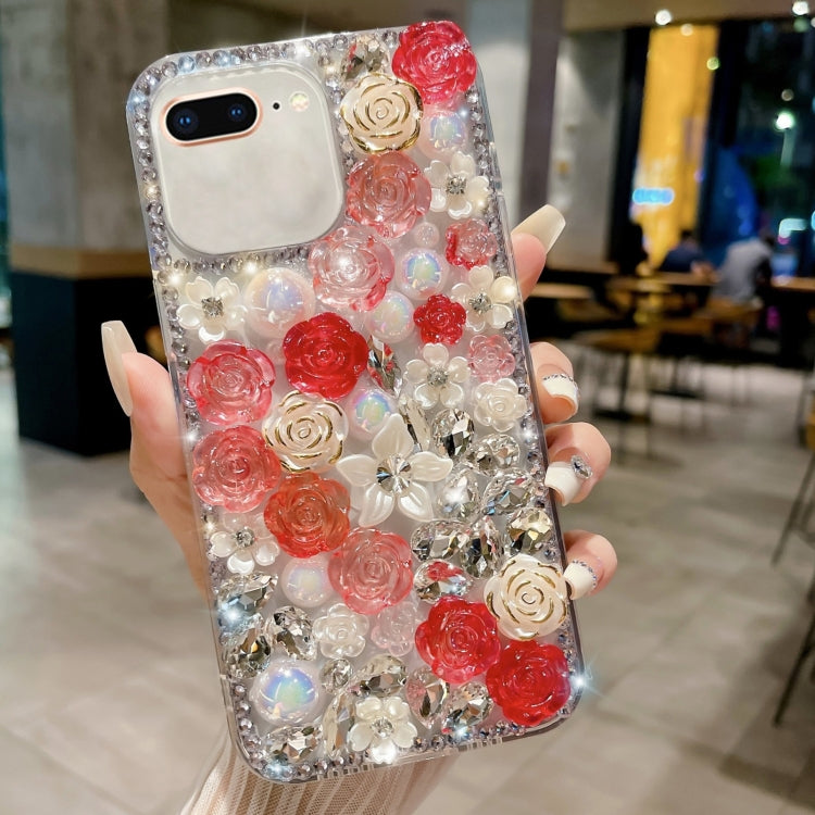 Estuche para Teléfono iPhone 7 Plus 8 Plus con PC Pearl Diamond y Juego de Manos (Rojo)