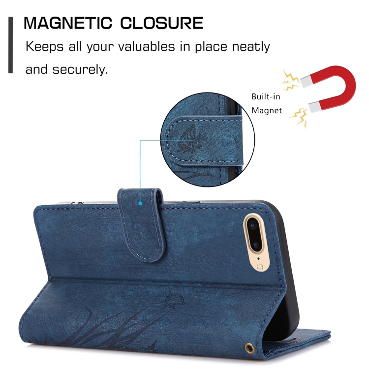 Funda para Teléfono iPhone 7 Plus/8 Plus Cuero Relieve Mariposa Orquídea (Azul)