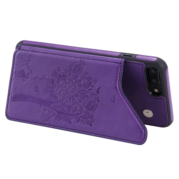 Funda Protectora para iPhone 7 Plus 8 Plus Patrón Árbol de Gato Ranuras para Tarjetas Marco de Fotos