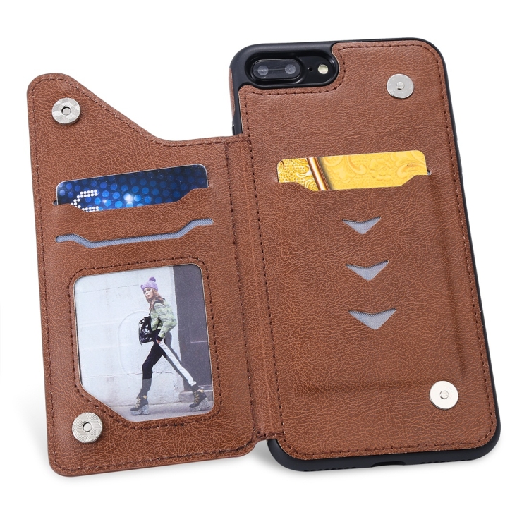 Funda Protectora para iPhone 7 Plus 8 Plus Patrón Relieve Árbol de Gato Ranuras Tarjetas Marco Fotos (Marrón)