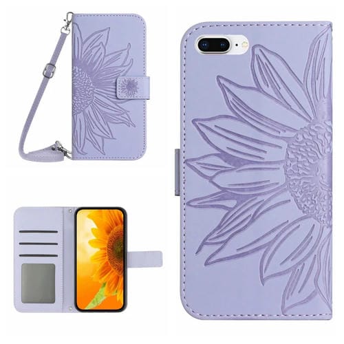 For iPhone 7 Plus/8 Plus Skin Feel Sun Flower Pattern Flip Leather Phone Case Cover with Lanyard(Purple)