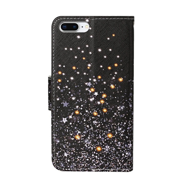 Funda de Cuero Abatible Horizontal para iPhone 8 Plus 7 Plus con Soporte Ranuras y Billetera (Estrella Negra)