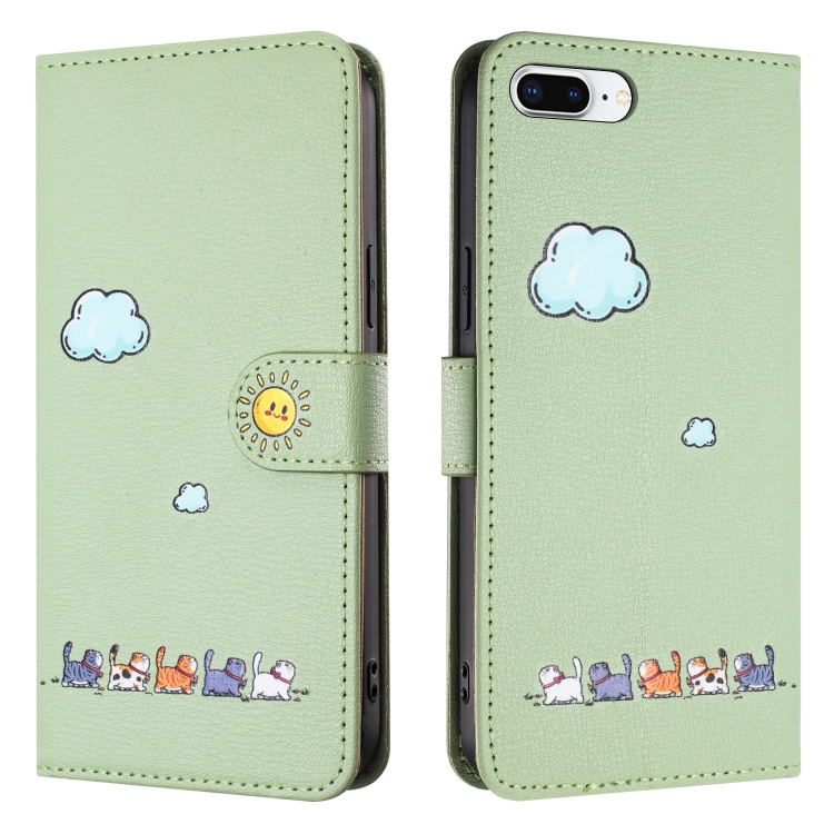 Funda para Teléfono iPhone 8 Plus/7 Plus Cuero Gatos Dibujos Animados (Verde)