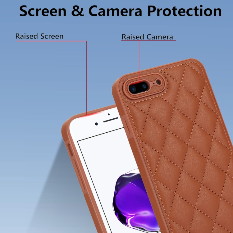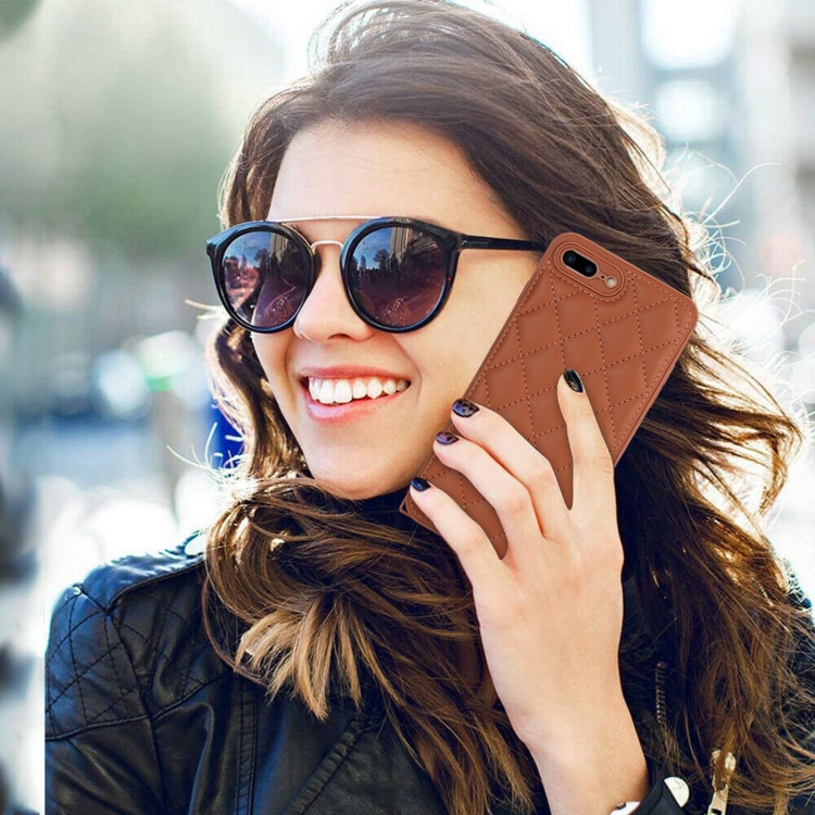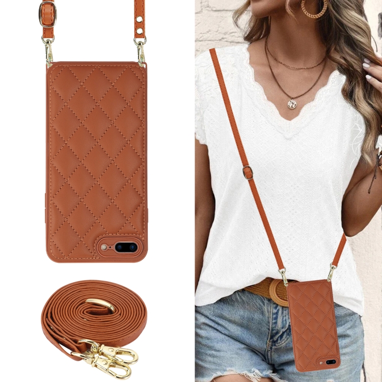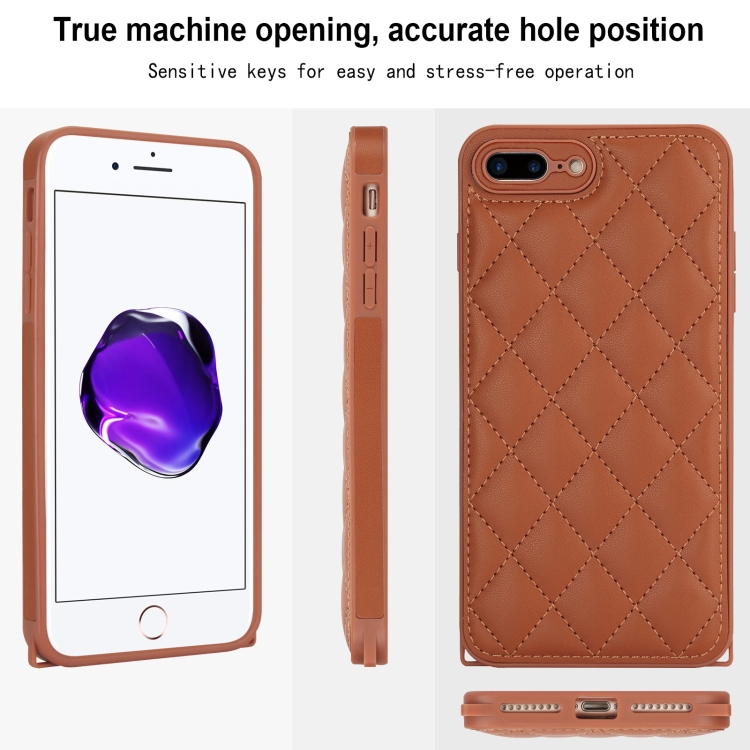 Funda para Teléfono iPhone 8 Plus/7 Plus Textura Rómbica y Cordón Doble (Marrón)