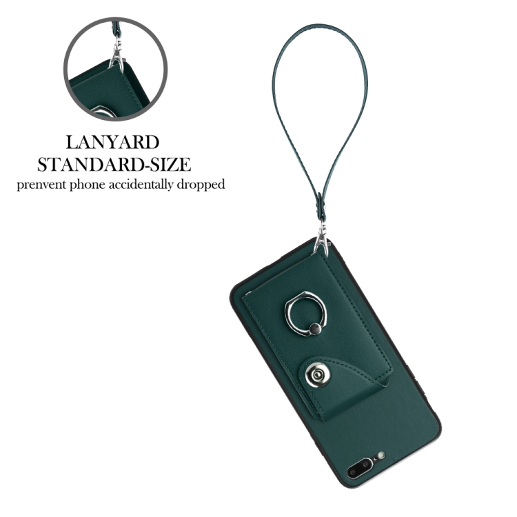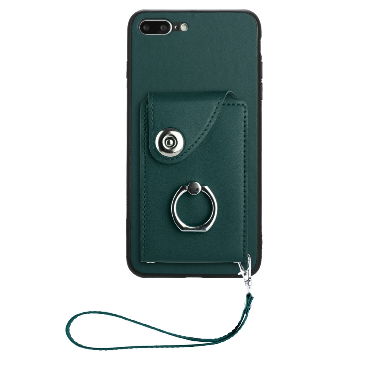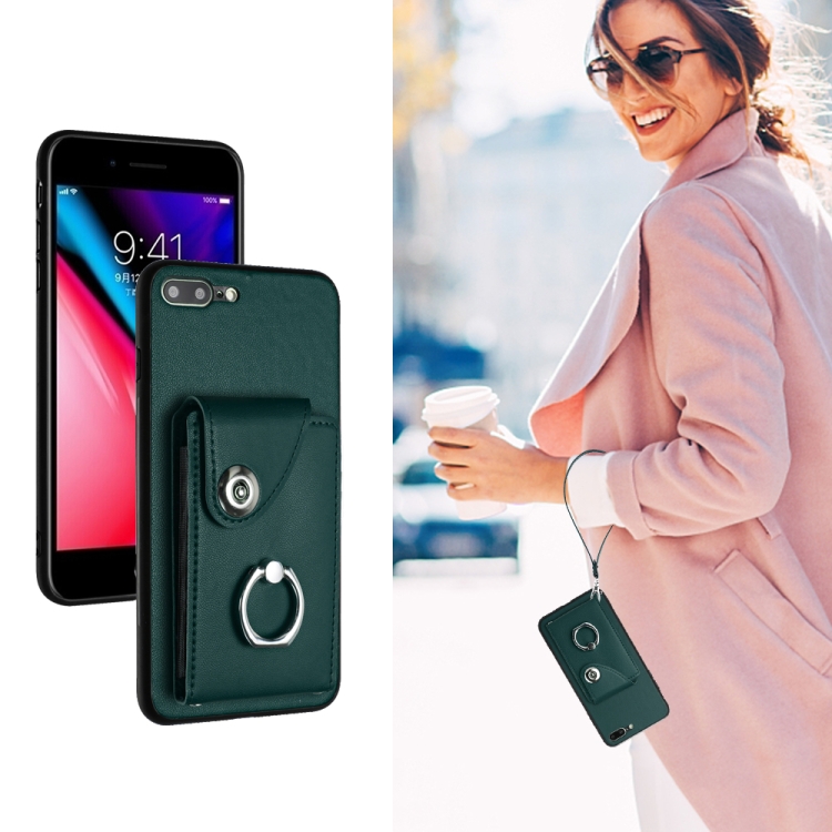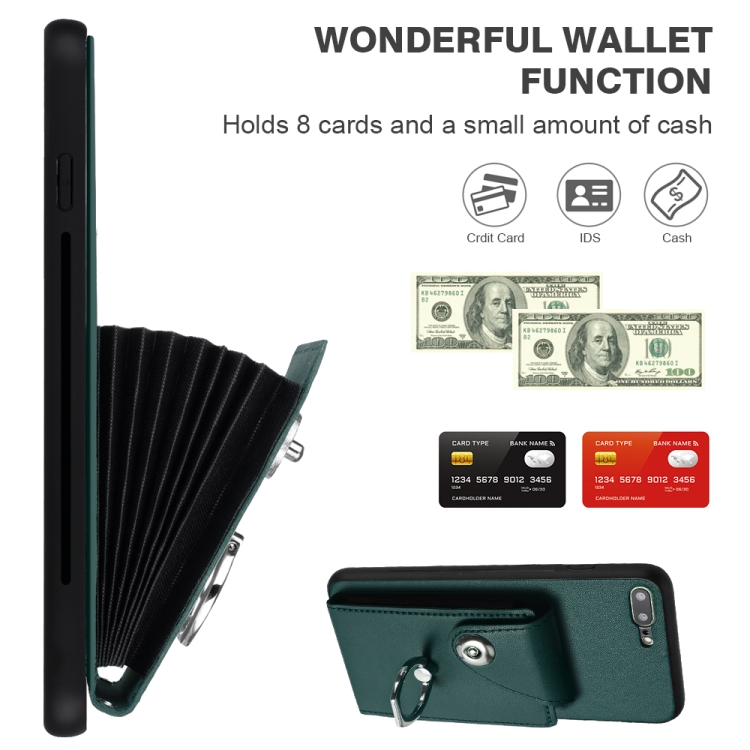 Funda para Teléfono iPhone 8 Plus/7 Plus PU con Soporte para Anillo y Bolsa para Tarjeta con Cordón (Verde)