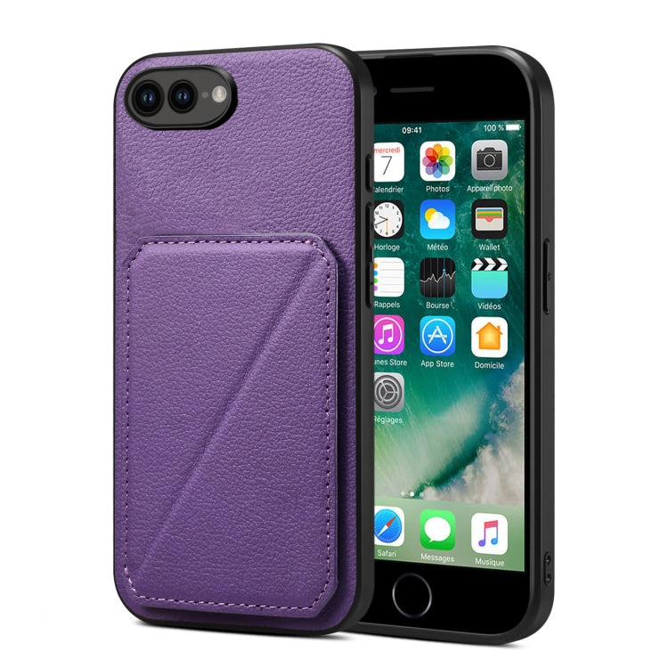 Funda Trasera para iPhone 8 Plus/7 Plus de piel de becerro de imitación con soporte (Púrpura)