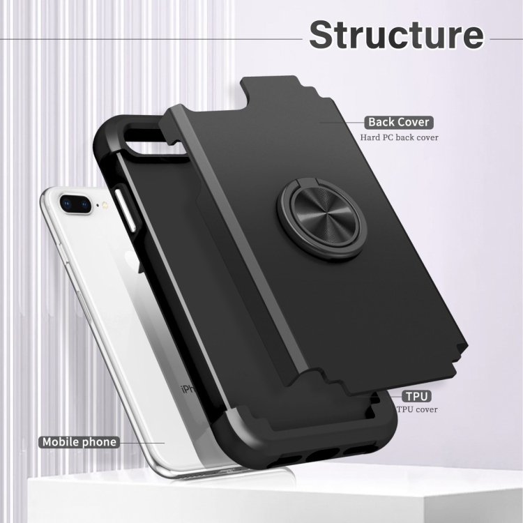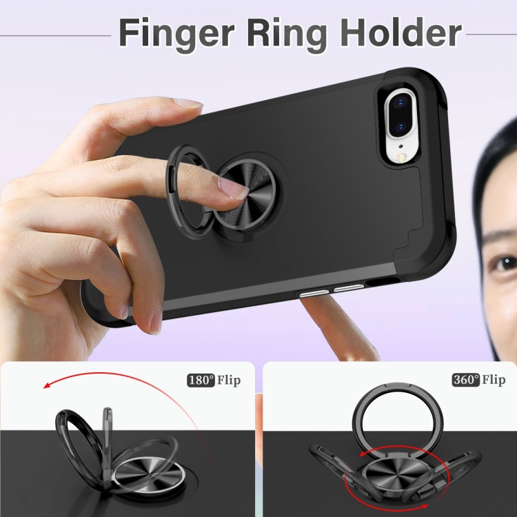 Funda para iPhone 8 Plus y 7 Plus L2 Magnética con Soporte de Anillo Giratorio (Negro)