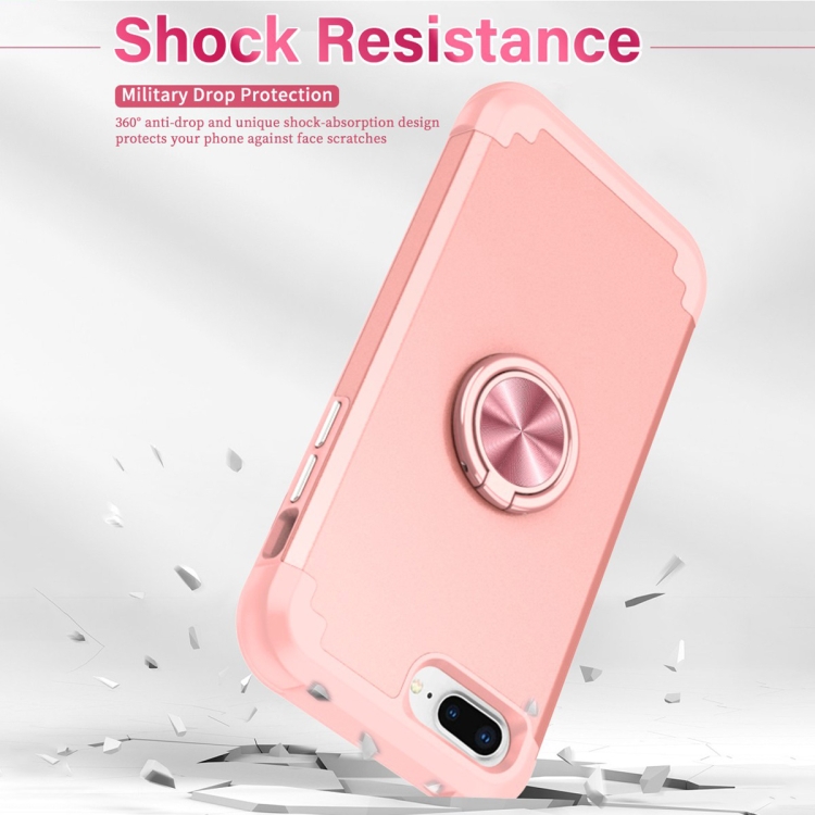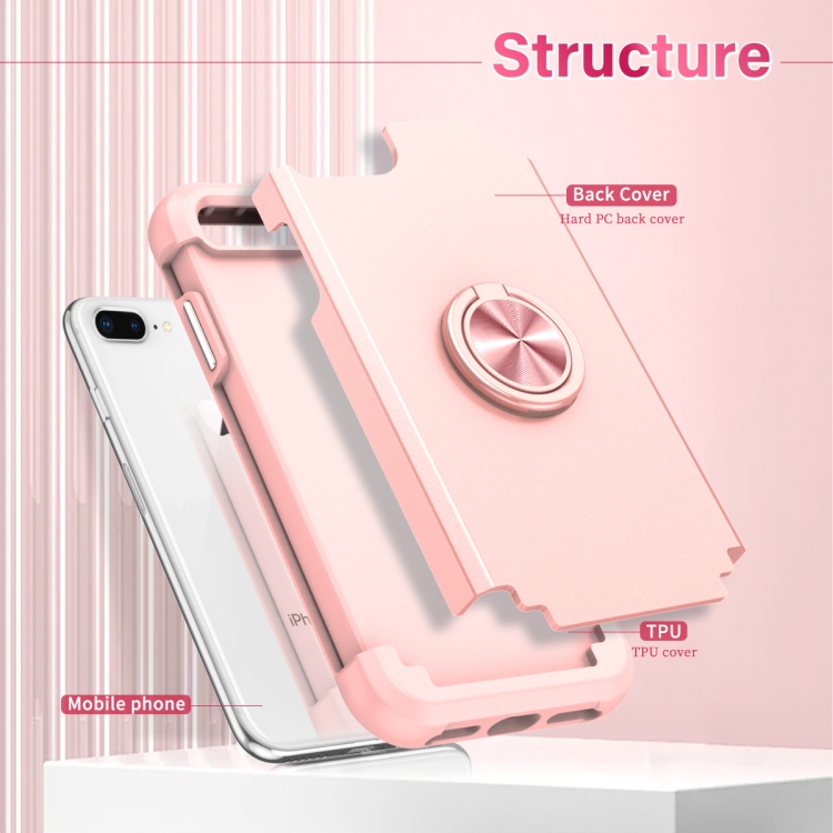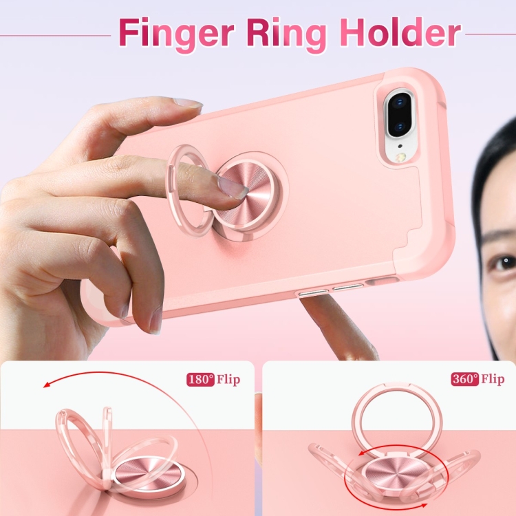 Funda Magnética para Teléfono L2 para iPhone 8 Plus y 7 Plus con Soporte de Anillo Giratorio (Oro Rosa)