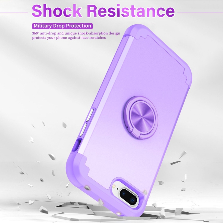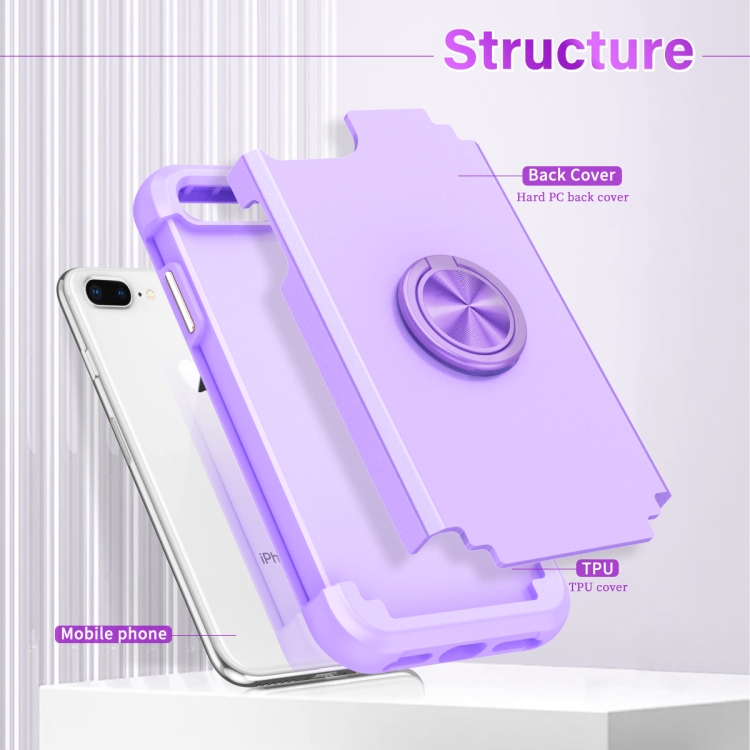 Funda magnética para teléfono iPhone 8 Plus/7 Plus L2 con soporte de anillo giratorio (Púrpura Claro)