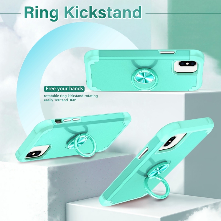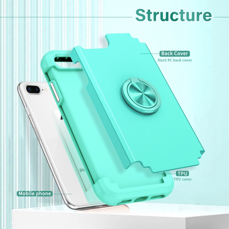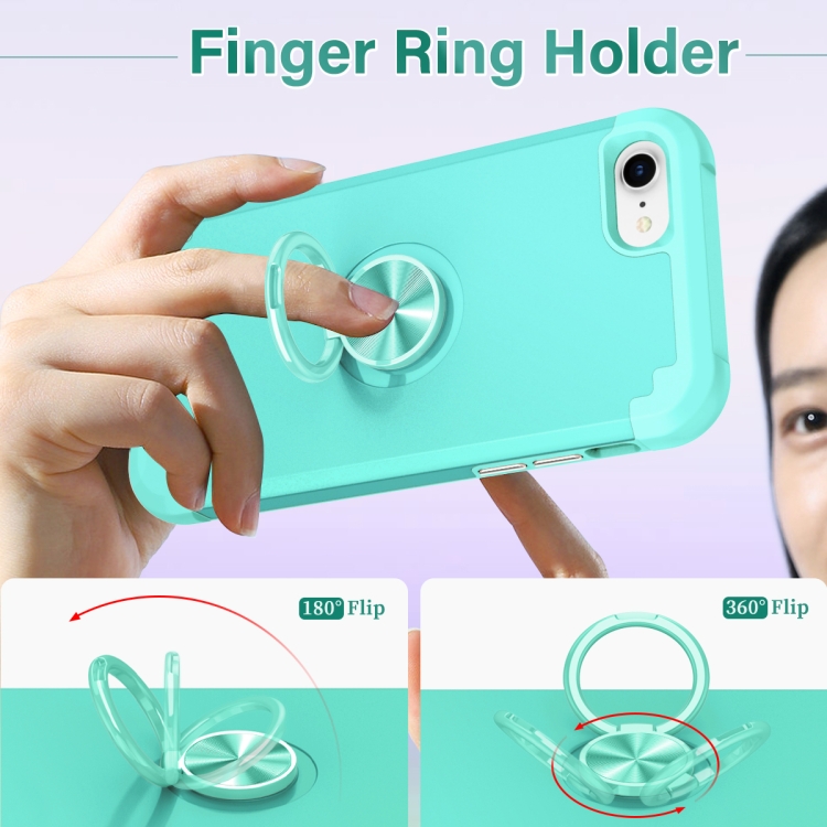 Funda Magnética para Teléfono iPhone 8 Plus/7 Plus L2 con Soporte de Anillo Giratorio (Verde Menta)