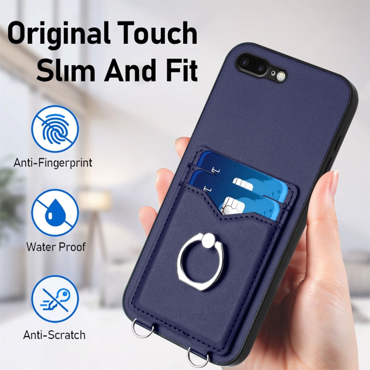 Funda para Teléfono iPhone 8 Plus/7 Plus R20 con Soporte para Tarjeta y Anillo Cruzado con Cuerda (Azul)