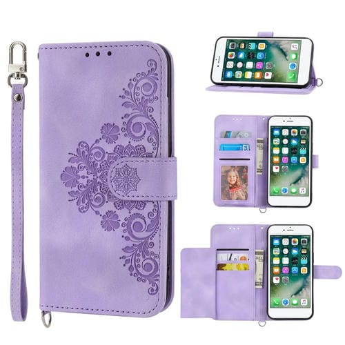 For iPhone 8 Plus/7 Plus Skin-feel Flowers Embossed Wallet Leather Phone Case (Purple)
