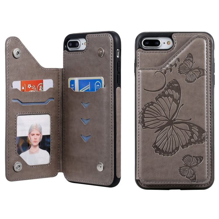 Funda Protectora para iPhone 8 Plus y 7 Plus Estampado Mariposas con Soporte y Ranuras para Tarjetas (Gris)
