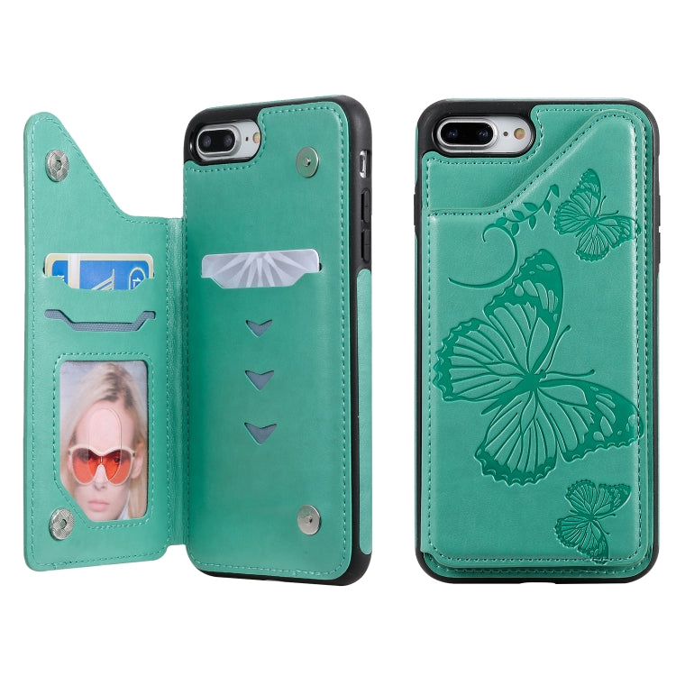 Funda protectora para iPhone 8 Plus y 7 Plus con estampado de mariposas, soporte, ranuras para tarjetas y marco de fotos (Verde)