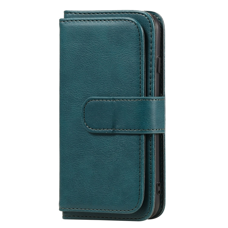Funda de Cuero iPhone 8 y 7 Hebilla de Cobre Magnética Multifuncional con 10 Ranuras (Verde Oscuro)