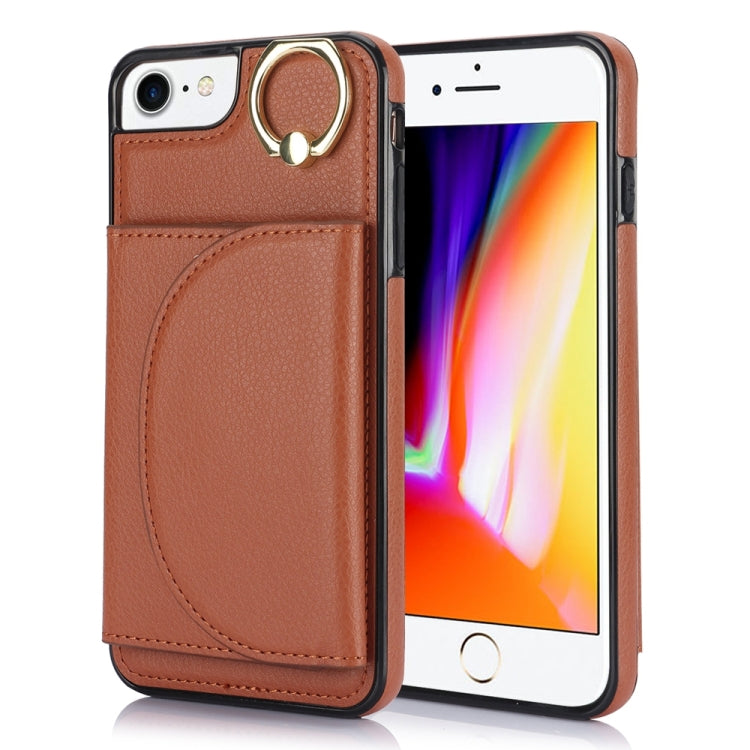 Funda para Teléfono Ym006 para iPhone SE 2020/8/7 con Soporte para Anillo y Tarjeta (Marrón)