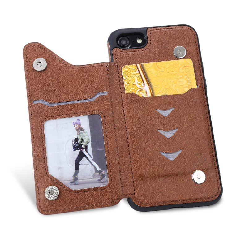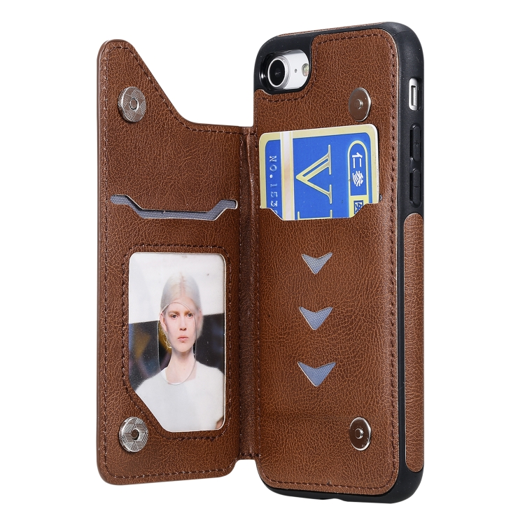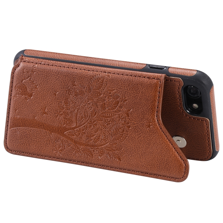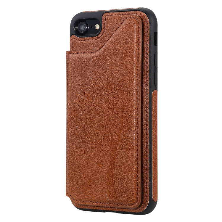 Funda Protectora iPhone SE 2020 8 7 Patrón Árbol de Gato Ranuras Tarjetas Marco Fotos Soporte (Marrón)