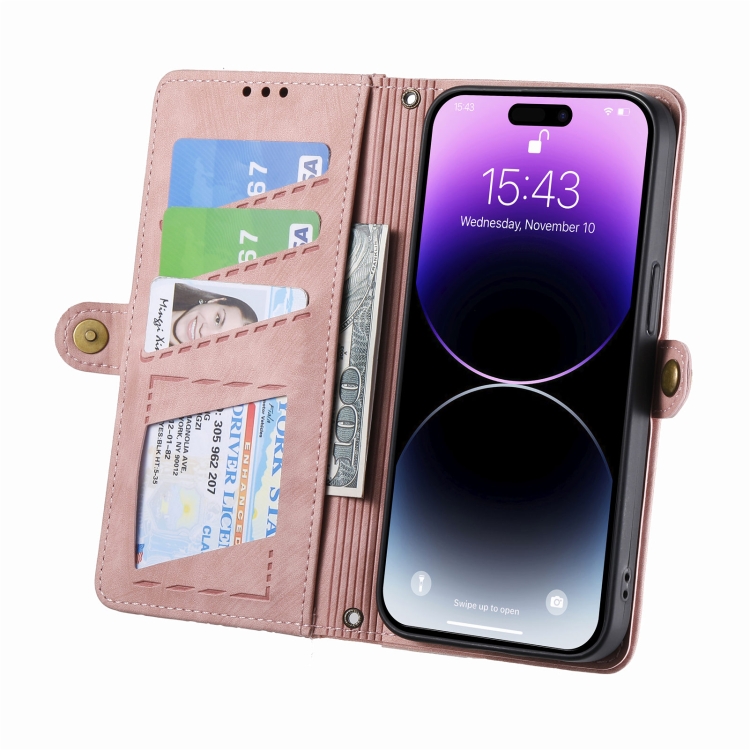 Estuche de Cuero para iPhone SE 2022/2020/7/8 con Cremallera Lateral para Billetera (Rosa)