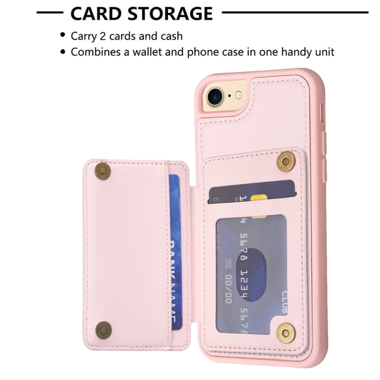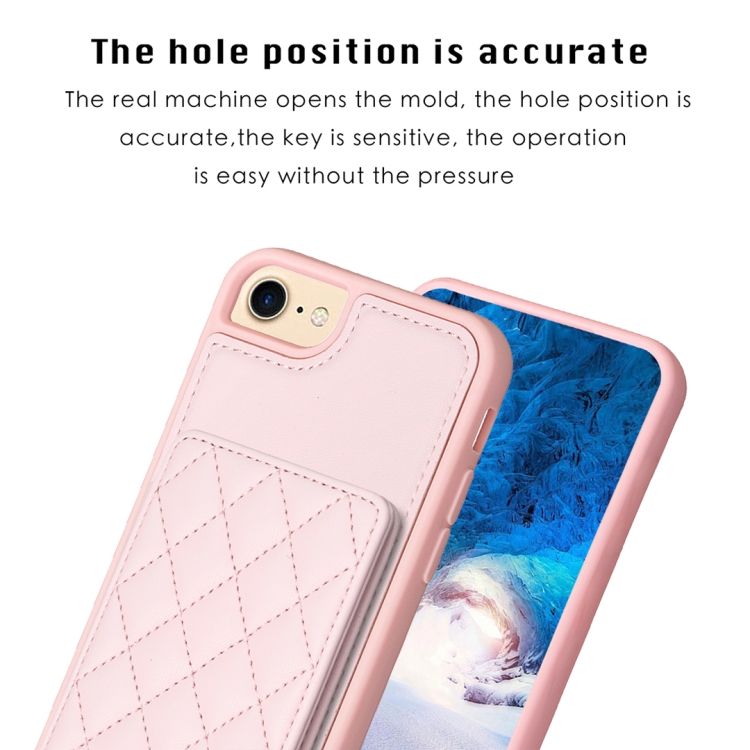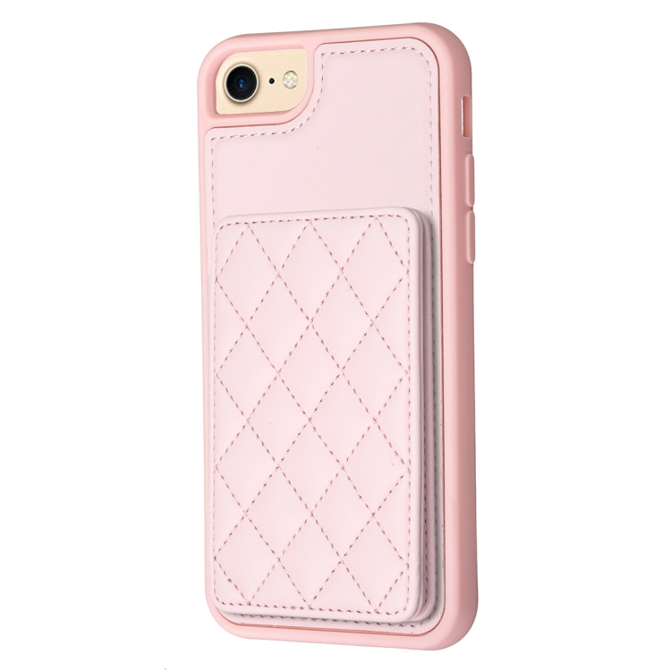 Funda para iPhone SE 2022/2020/8/7 Bf25 Square Plaid Card Bag Holder (Rosa)