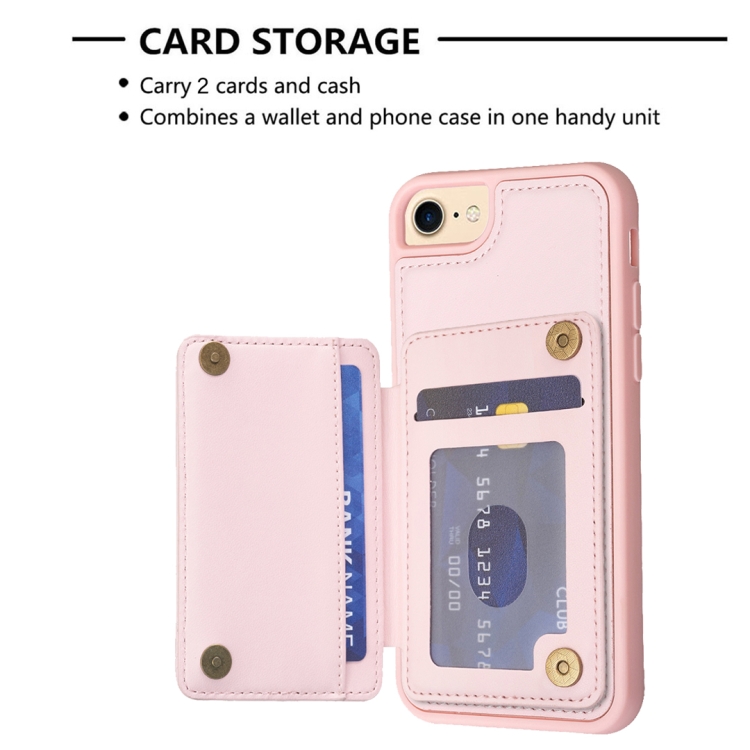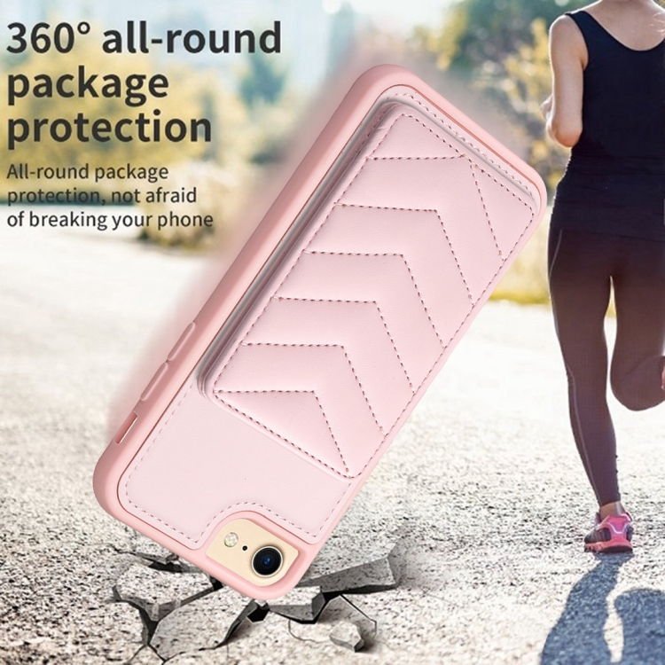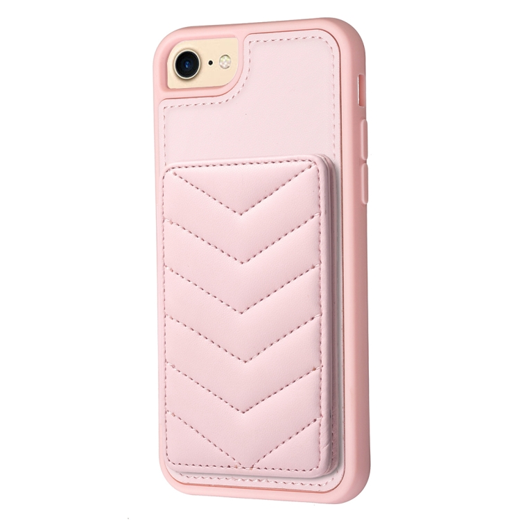 Funda para teléfono iPhone SE 2022/2020/8/7 Bf26 Wave Pattern Card Bag Holder (Rosa)