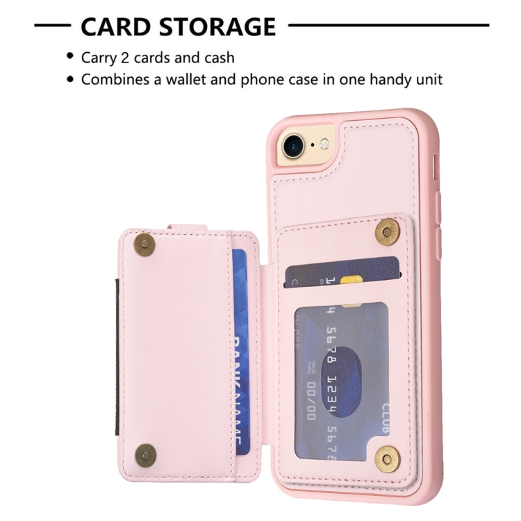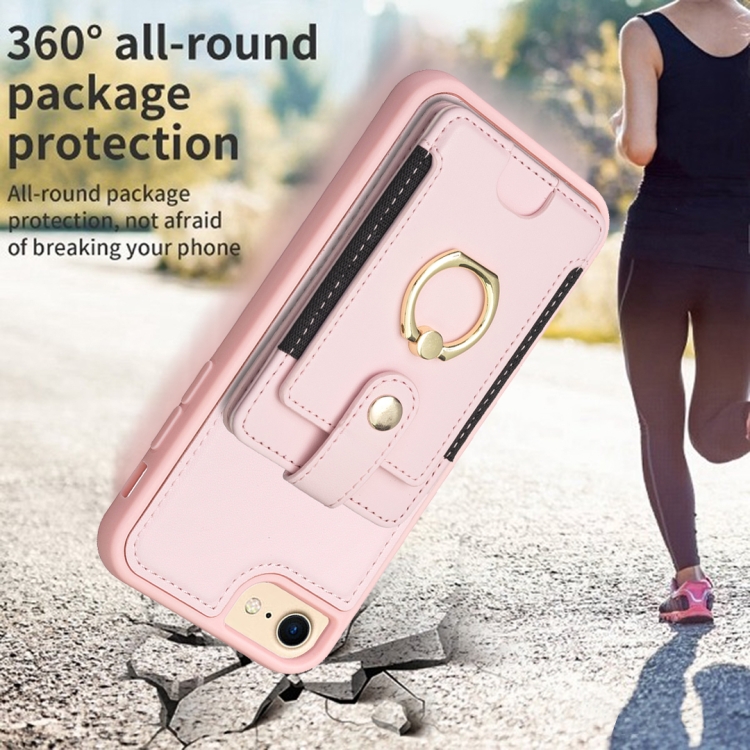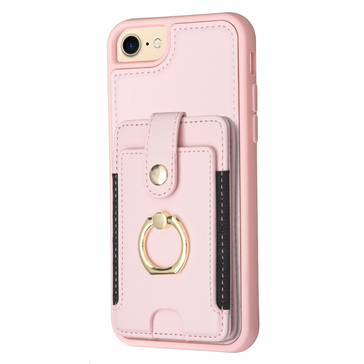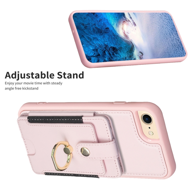 Funda para Teléfono Bf27 para iPhone SE 2022 / 2020 / 8 / 7 con Soporte para Tarjeta y Anillo de Metal (Rosa)