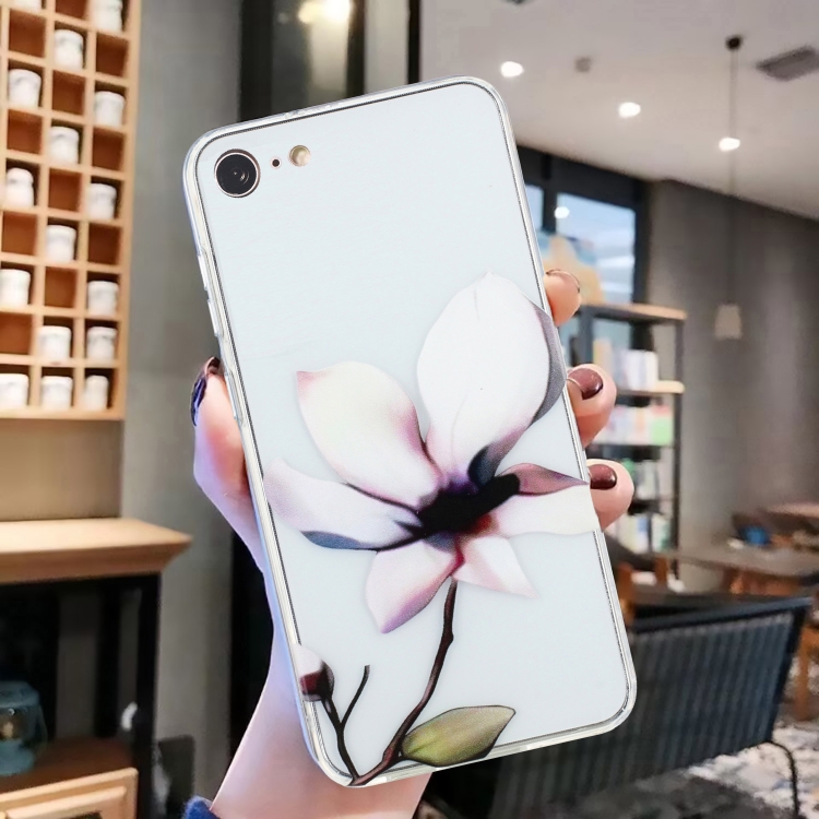 Funda de Teléfono TPU para iPhone SE 2022/2020/8/7 con Patrón de Pintura Colorida (Flores Blancas)