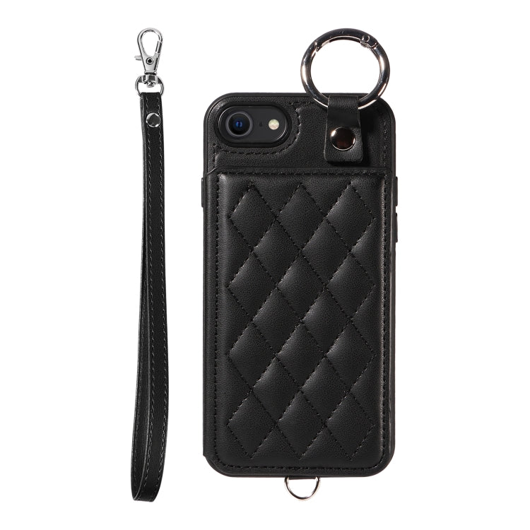 Funda para Teléfono iPhone SE 2022/2020/8/7 con Bolsa para Tarjetas Textura Rómbica y Cordón Corto (Negro)
