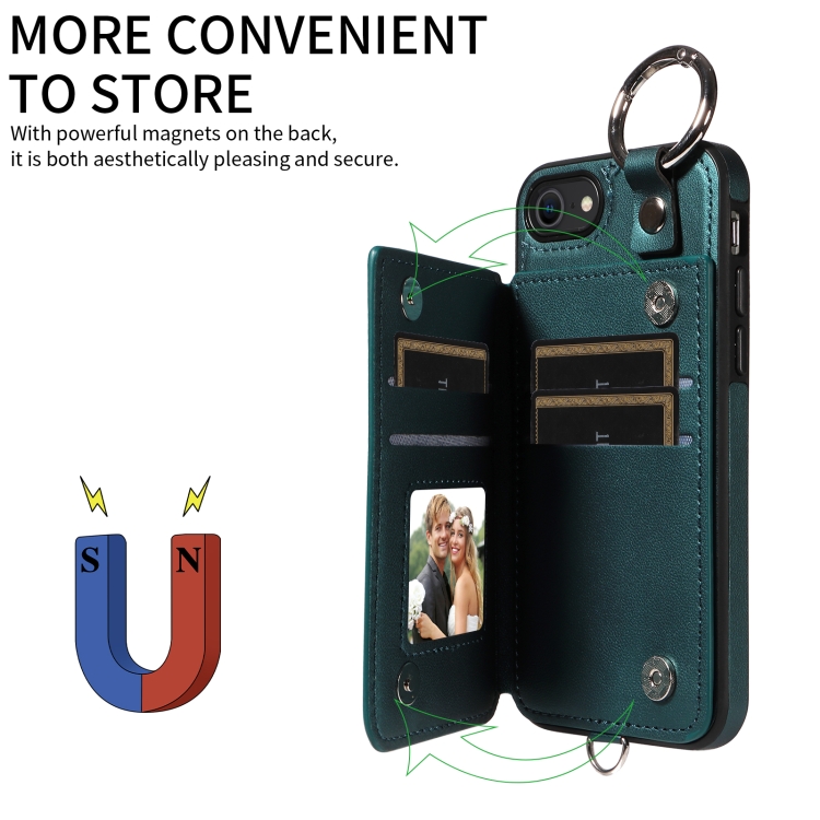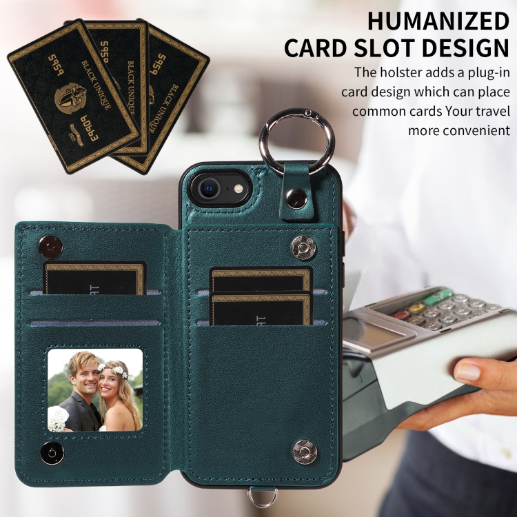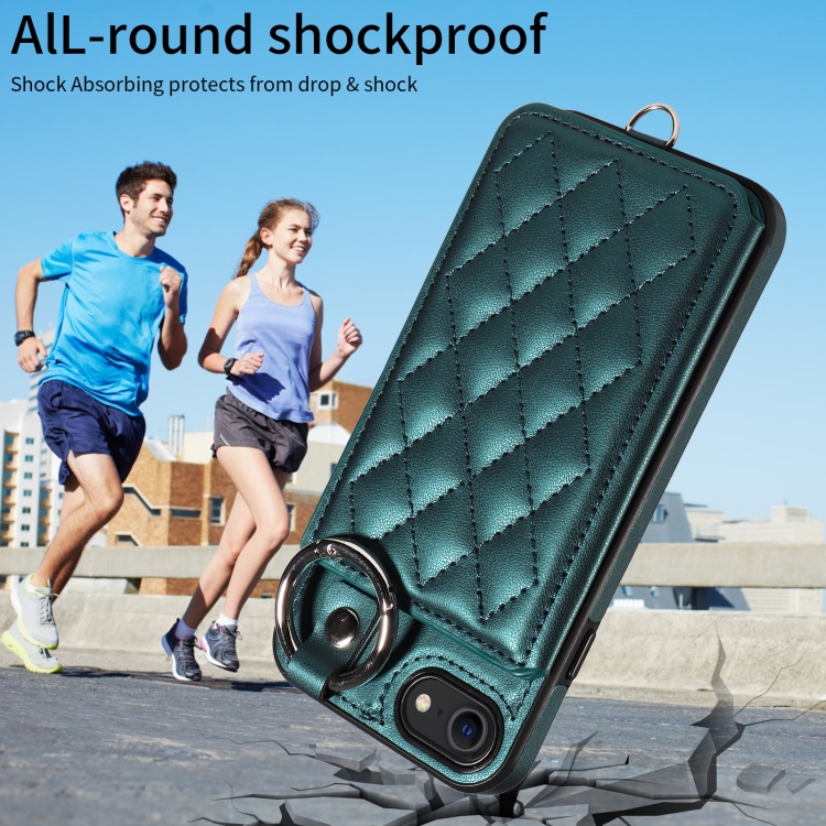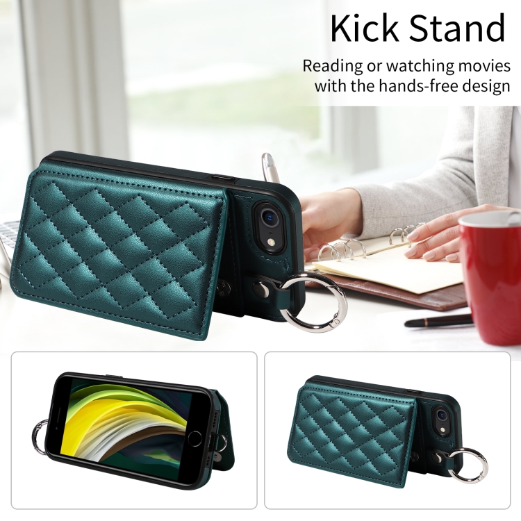 Funda para Teléfono iPhone SE 2022/2020/8/7 con Bolsa para Tarjetas Textura Rómbica y Cordón Corto (Verde)
