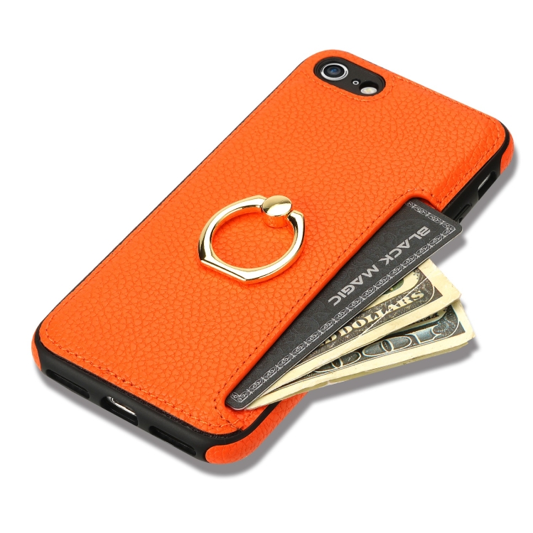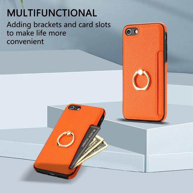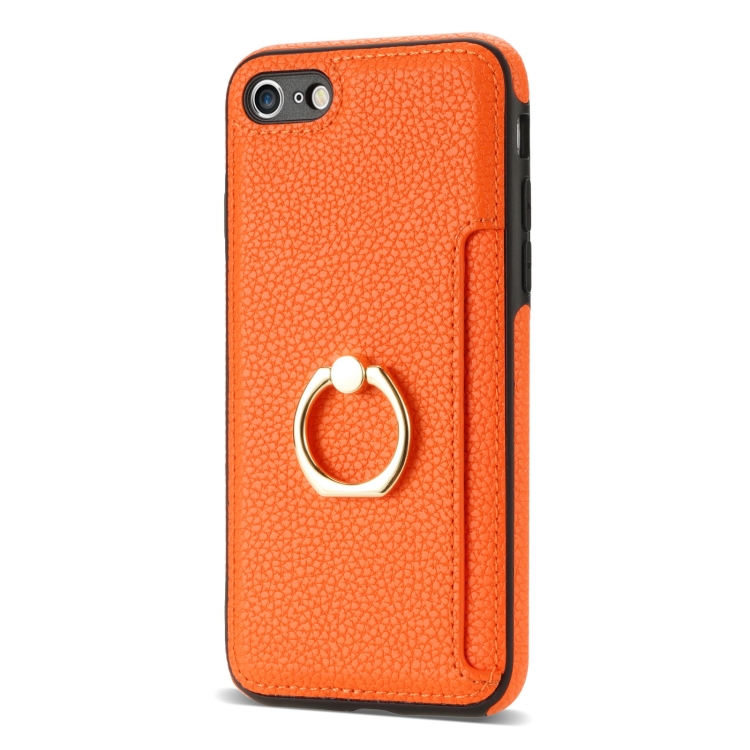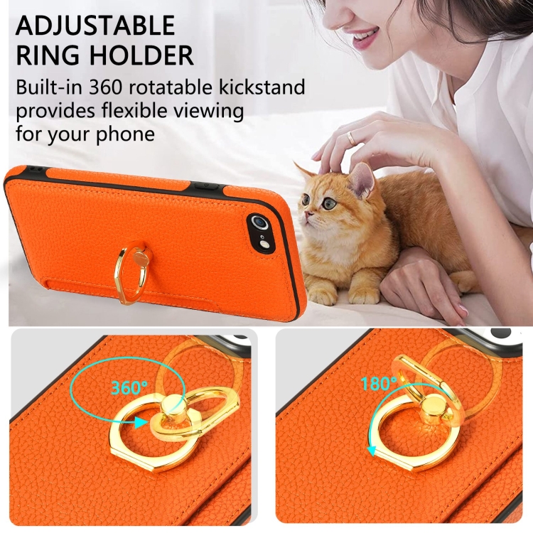 Funda para Teléfono iPhone SE 2022/2020/8/7 Cuero Litchi con Tarjeta y Anillo (Naranja)
