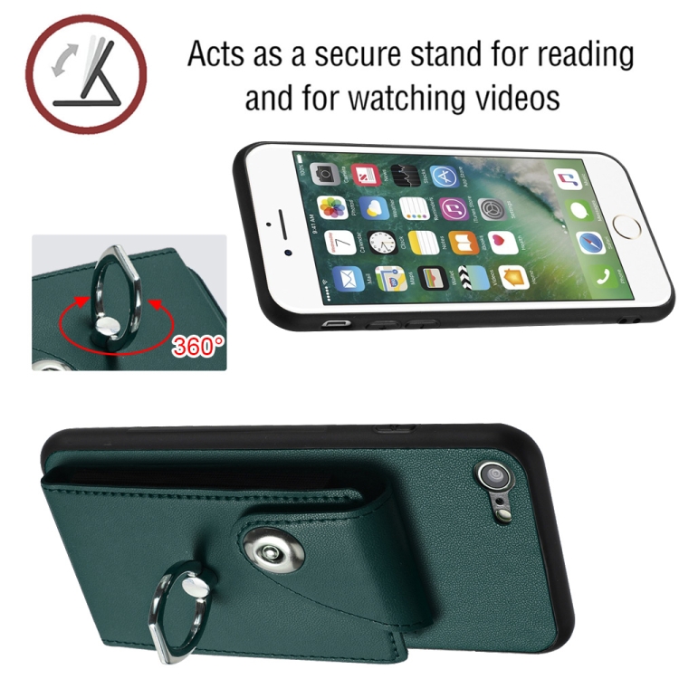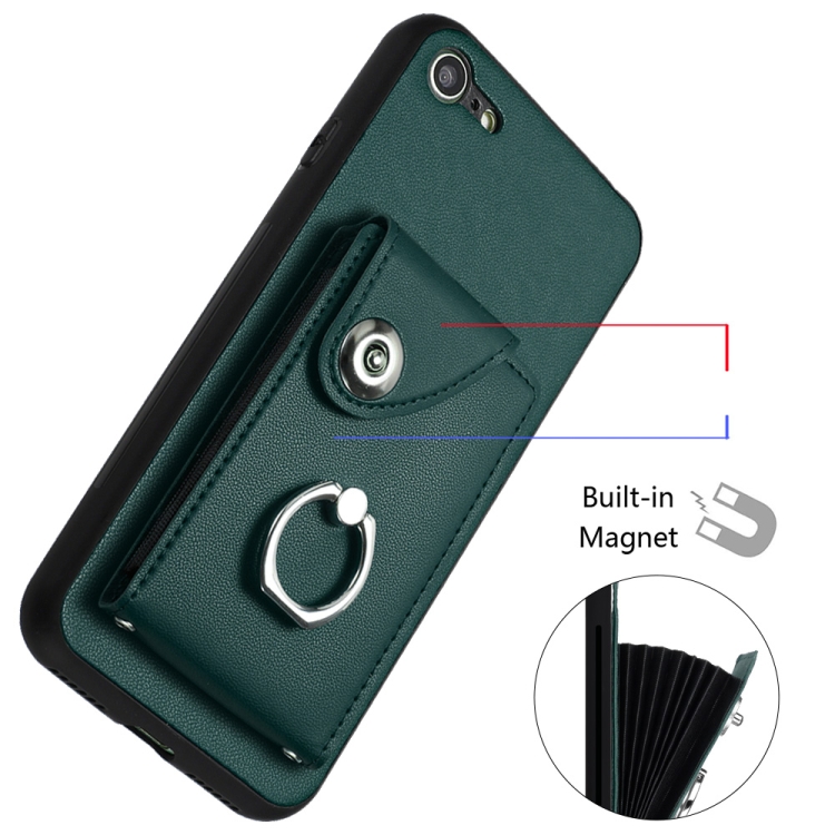 Funda para Teléfono iPhone SE 2022/2020/8/7 con Soporte para Anillo y Bolsa para Tarjeta (Verde)