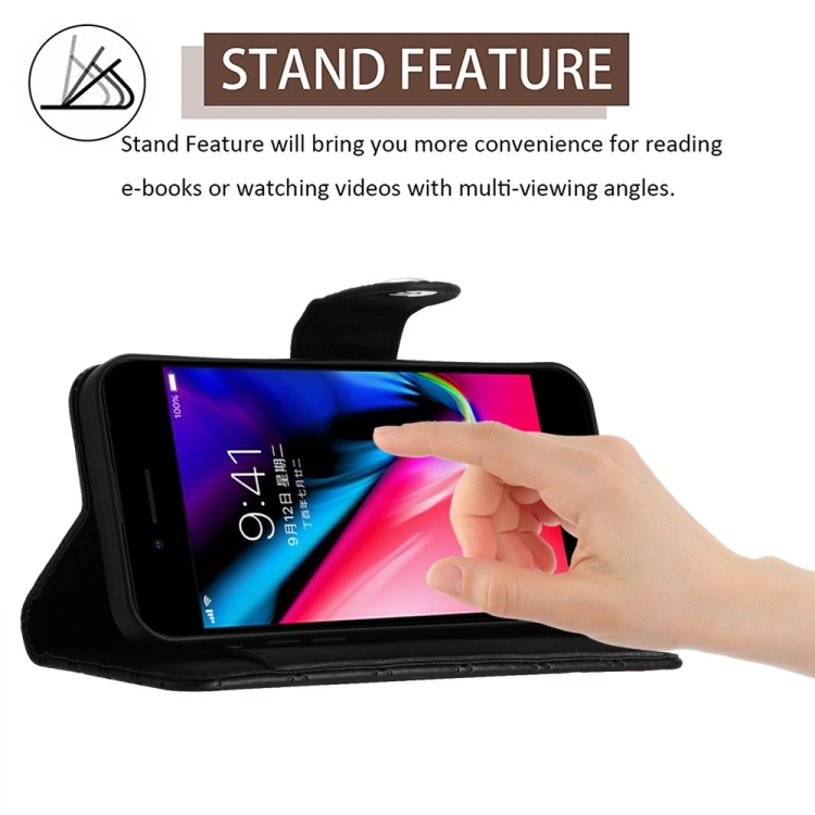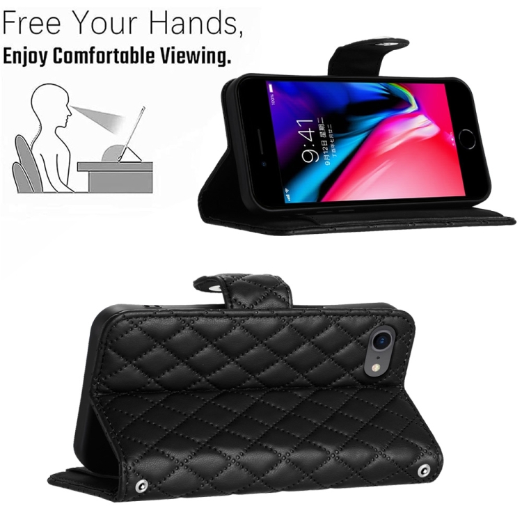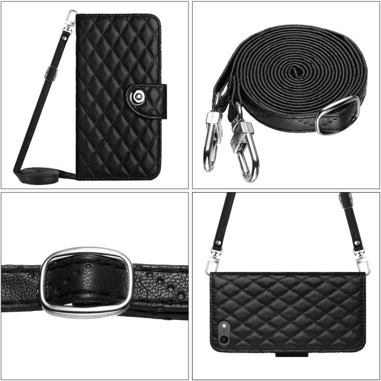 Funda para Teléfono iPhone SE 2022/2020/8/7 Cuero con Tapa Textura Rómbica y Cordón Largo (Negro)