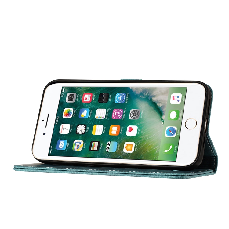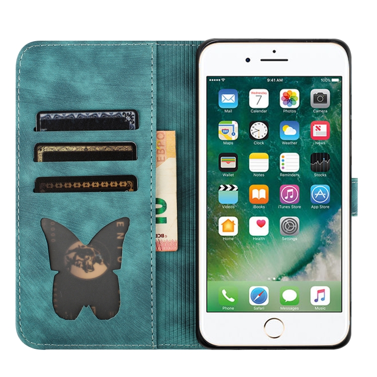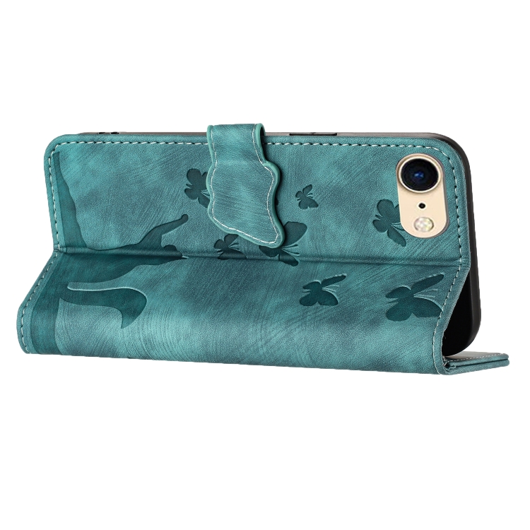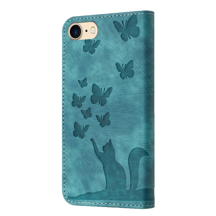 For iPhone SE 2022/2020/8/7 Butterfly Cat Pattern Flip Leather Phone Case (Wathet)