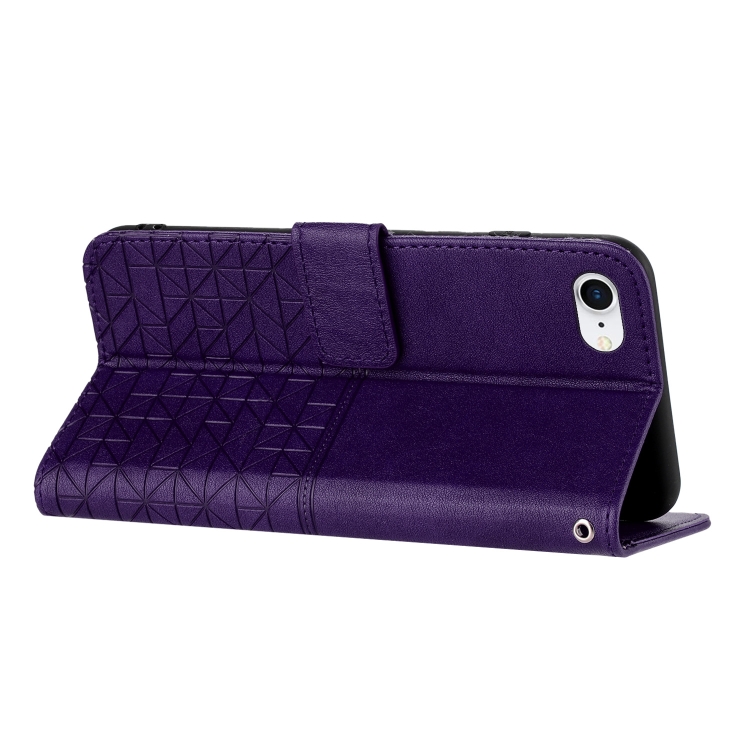 Funda para Teléfono iPhone Se 2022/2020/8/7 Cuero Textura Rómbica Cordón (Púrpura)