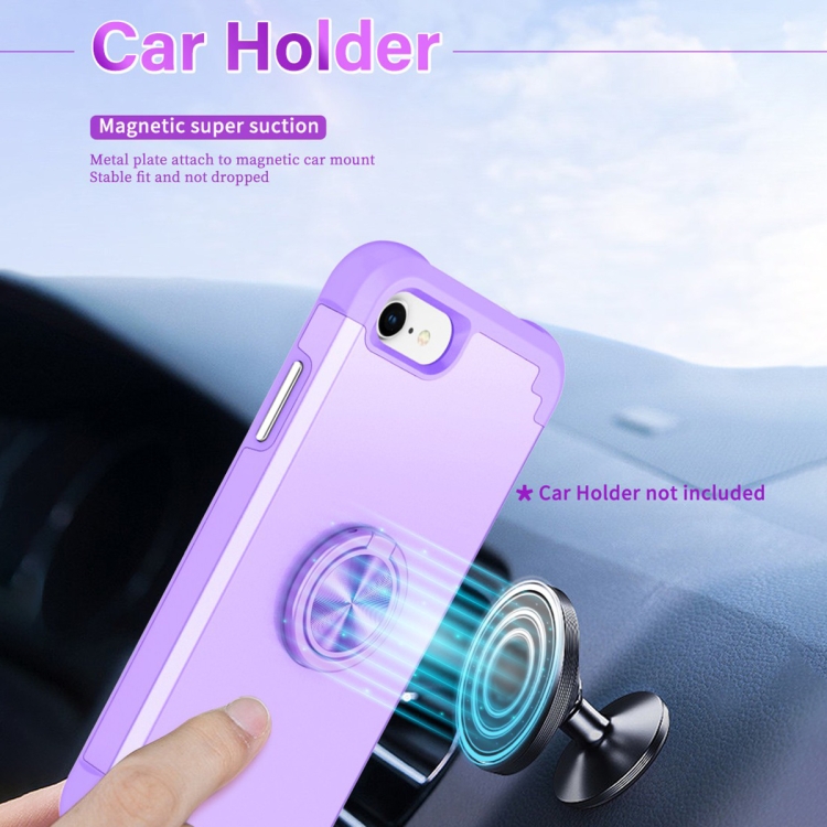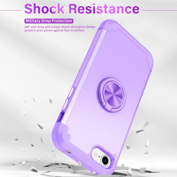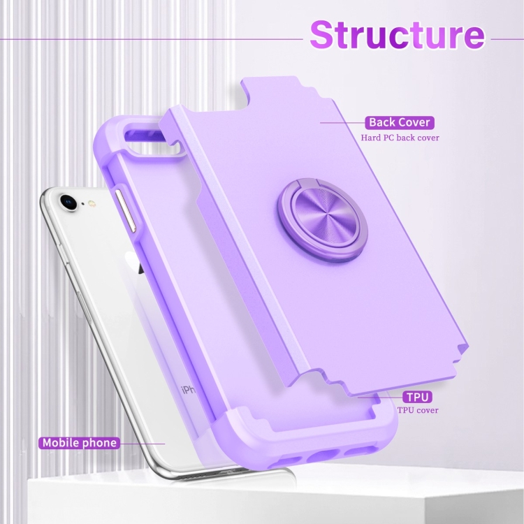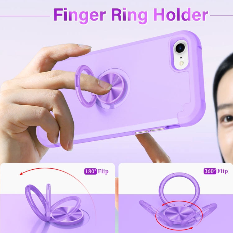 Funda Magnética para iPhone SE 2022/2020/8/7 L2 con Soporte de Anillo Giratorio (Púrpura Claro)
