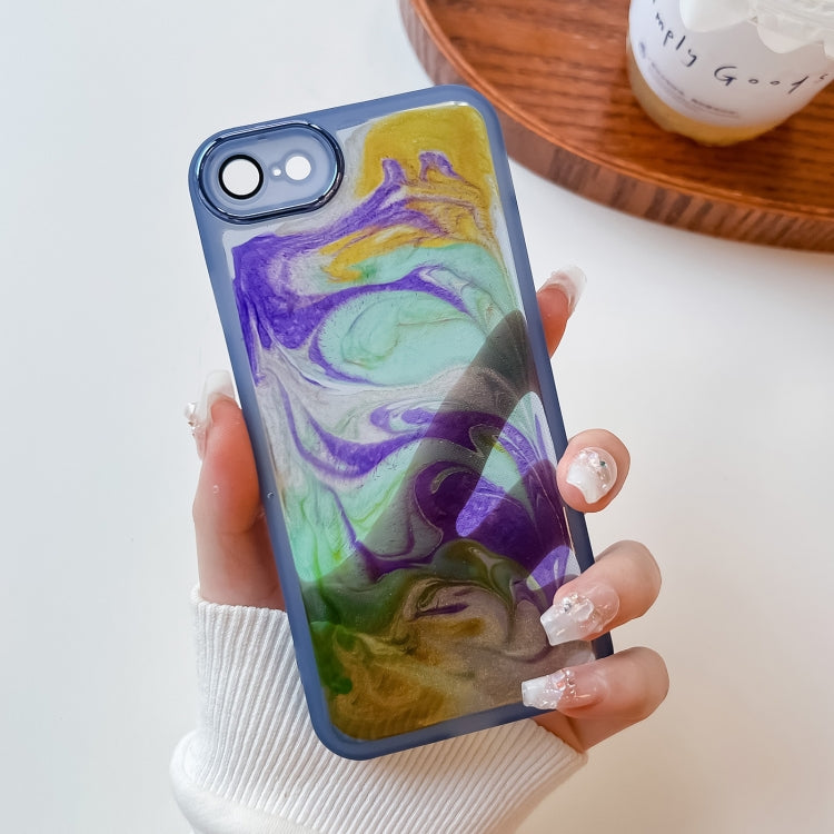 Funda para iPhone SE 2022/2020 8 7 TPU Pintura al Óleo Galvanoplastia (Azul)