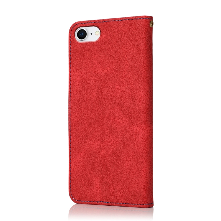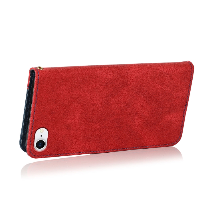Funda de Teléfono iPhone SE 2022/2020 Cuero con Costuras Dos Colores (Rojo Azul)