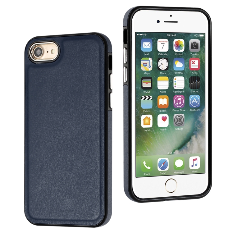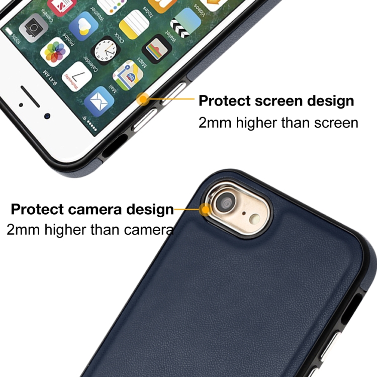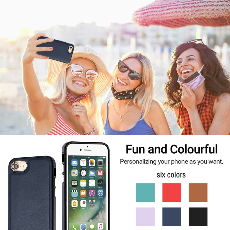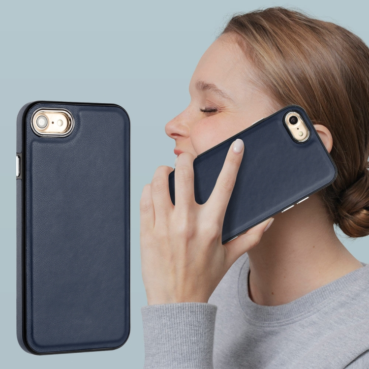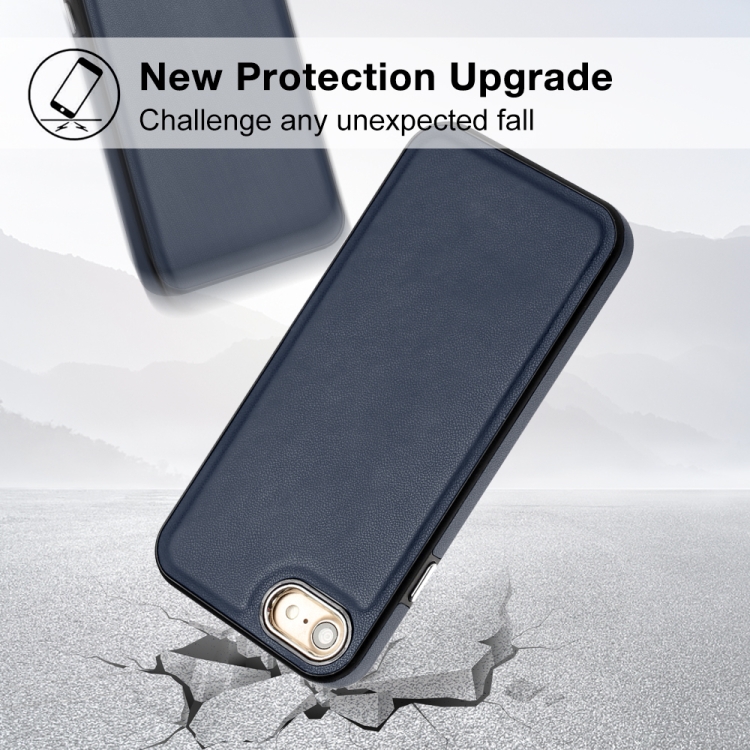 Funda de Teléfono para iPhone SE 2022/6/7/8/SE 2020 con Textura de Cuero y Cobertura Completa (Azul)