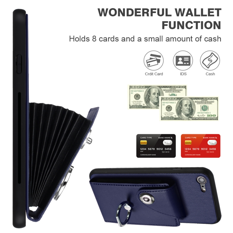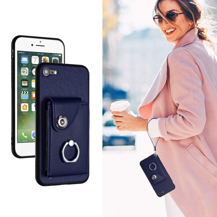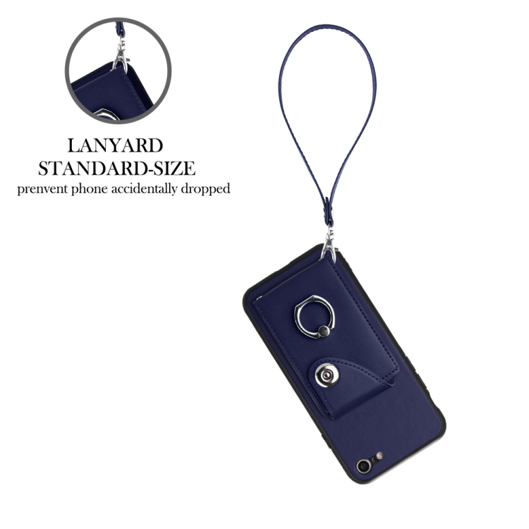 Funda para Teléfono iPhone Se 2022/Se 2020/6/7/8 Bolsa para Tarjeta Soporte para Anillo de PU con Cordón (Azul)