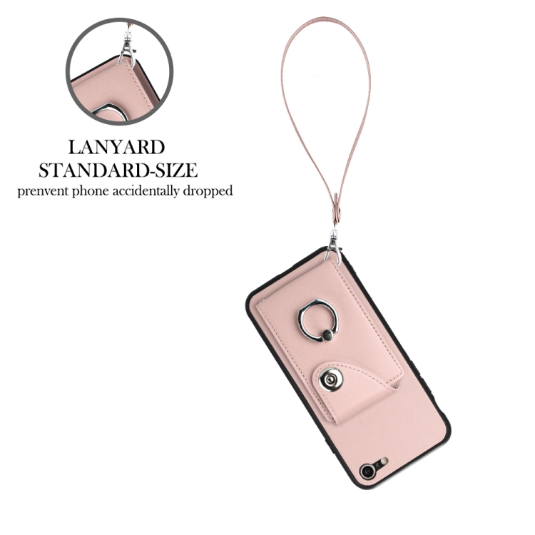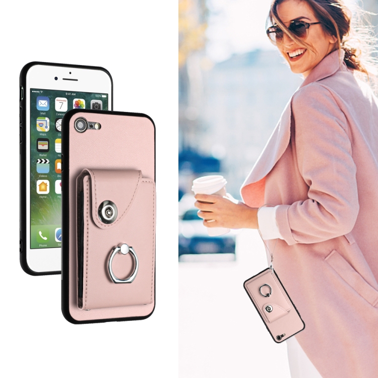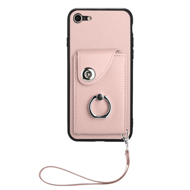 Funda para Teléfono iPhone Se 2022/Se 2020/6/7/8 Bolsa Tarjeta Soporte Anillo PU con Cordón (Rosa)