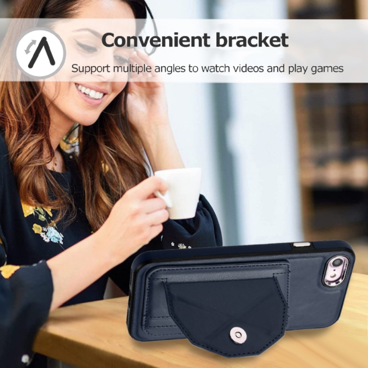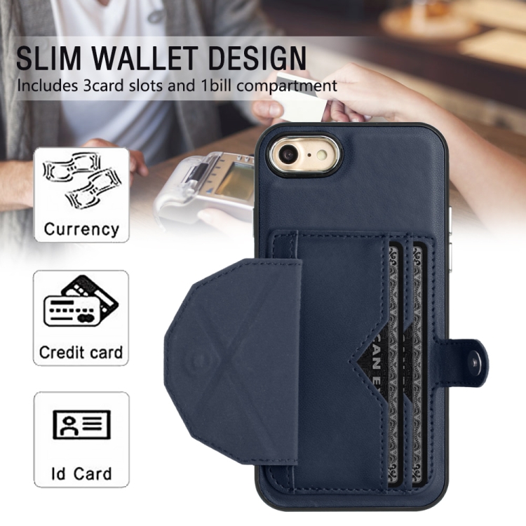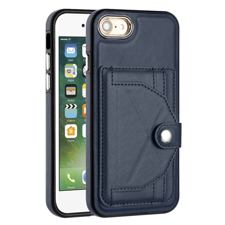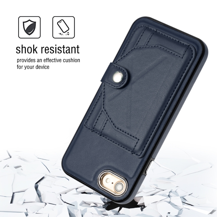 Funda de teléfono iPhone SE 2022/SE 2020/6/7/8 cuero a prueba de golpes con tarjetero (Azul)