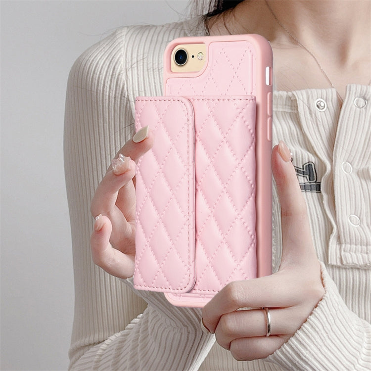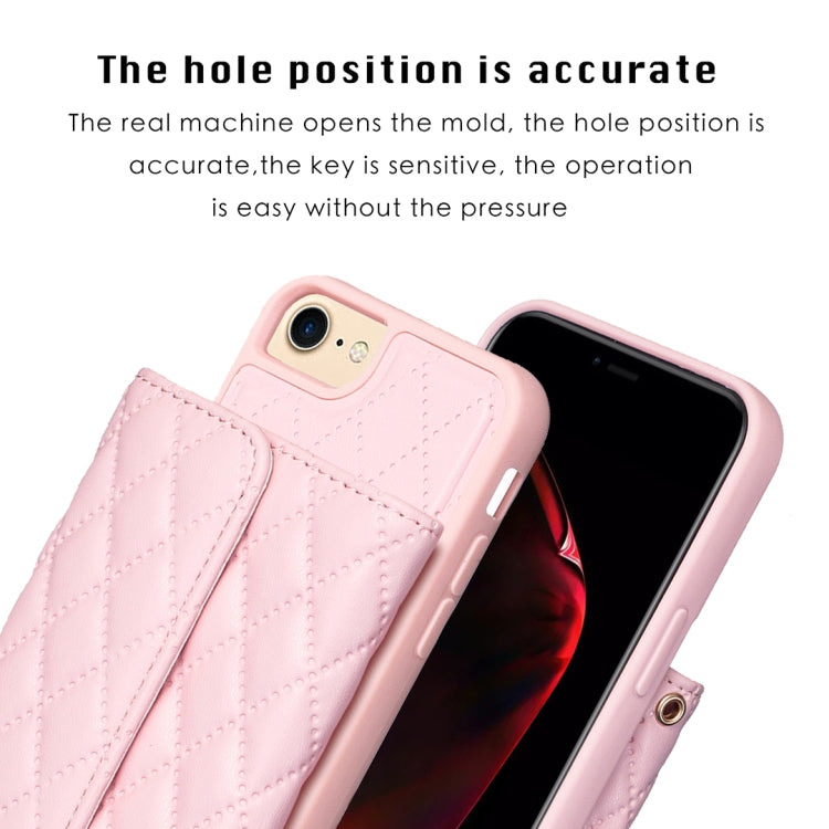 For iPhone SE 2022 / SE 2020 / 7 / 8 Horizontal Wallet Rhombic Leather Phone Case (Pink)