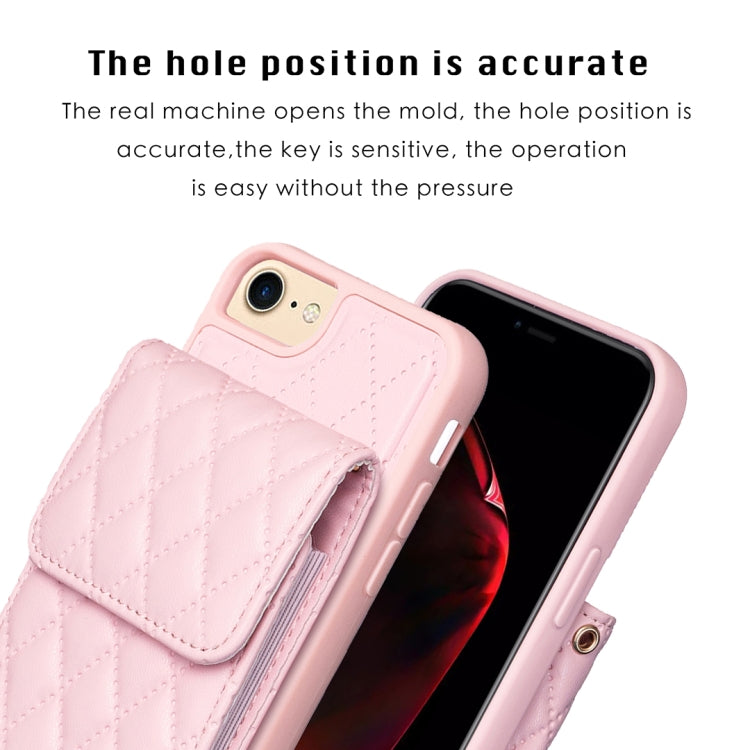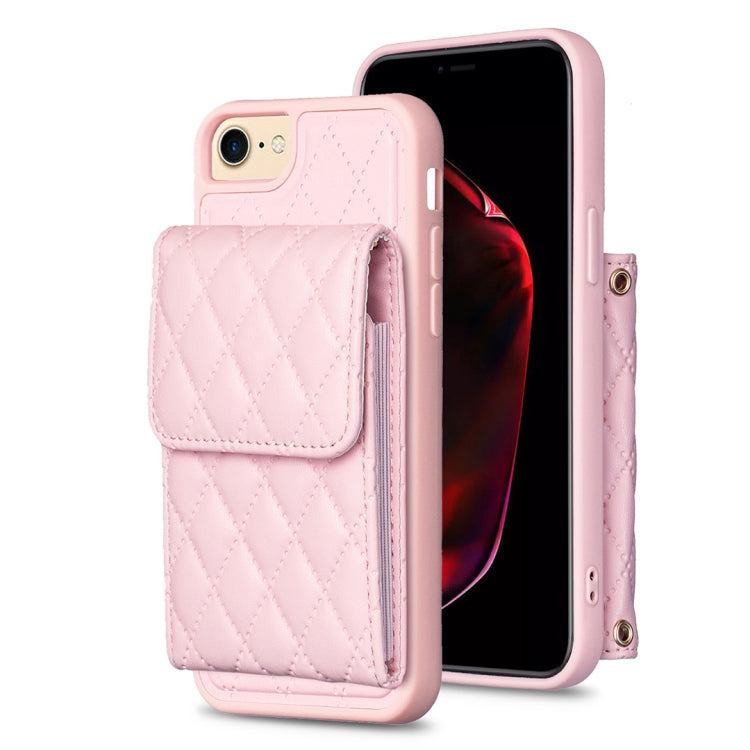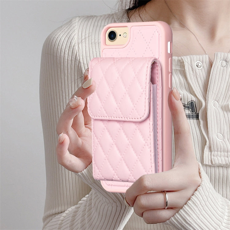 For iPhone SE 2022 / SE 2020 / 7 / 8 Vertical Wallet Rhombic Leather Phone Case (Pink)