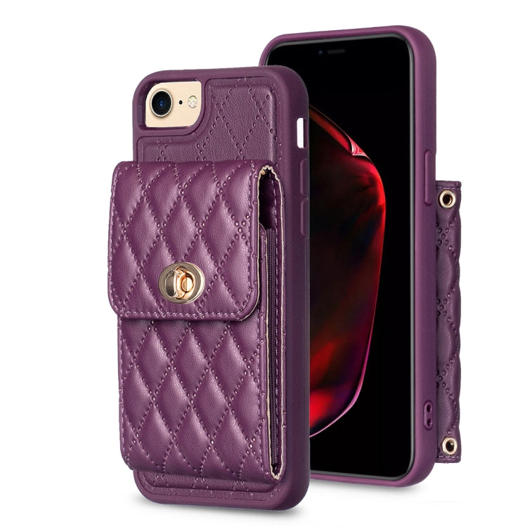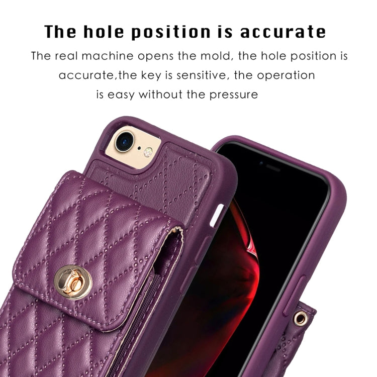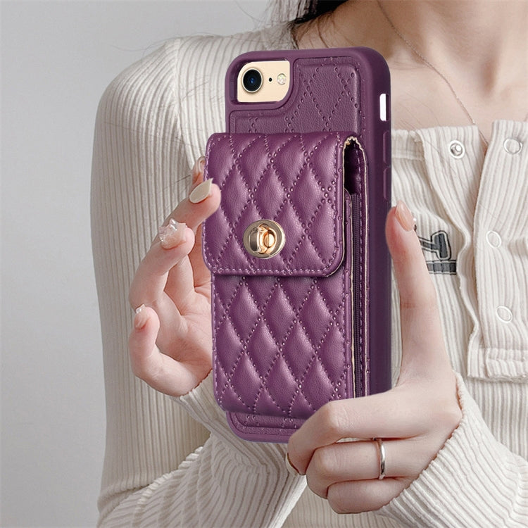 For iPhone SE 2022 / SE 2020 / 7 / 8 Vertical Metal Buckle Rhombic Leather Phone Case (Dark Purple)