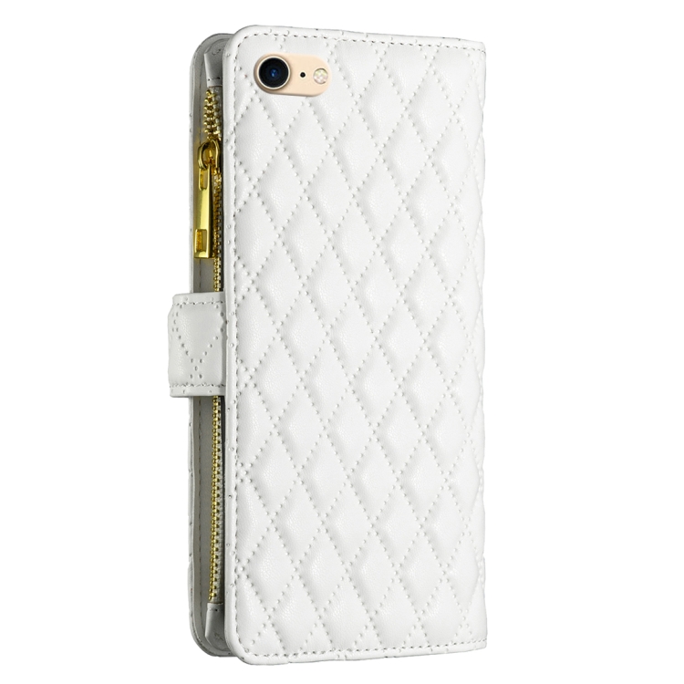 Funda Flip Zipper Wallet de Cuero para iPhone SE 2022 SE 2020 8 7 (Blanco)