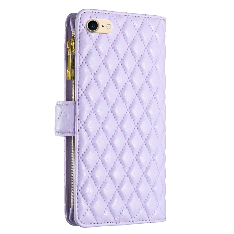 Funda Flip Leather Wallet con Cremallera para iPhone SE 2022 / SE 2020 / 8 / 7 (Púrpura)