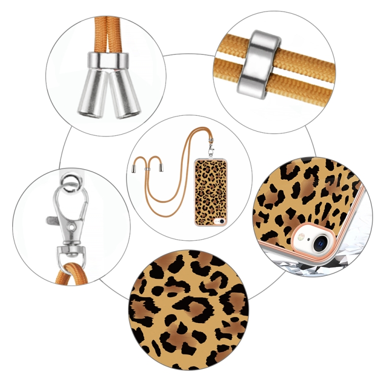 Estuche para Teléfono iPhone SE 2022/SE 2020/8/7 IMD Doble Cara con Galvanoplastia y Cordón (Estampado de Leopardo)