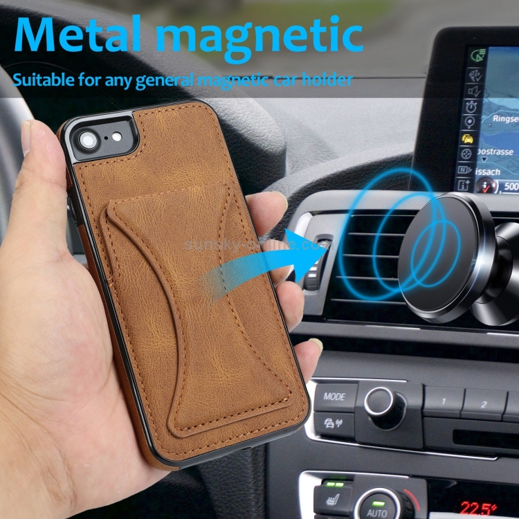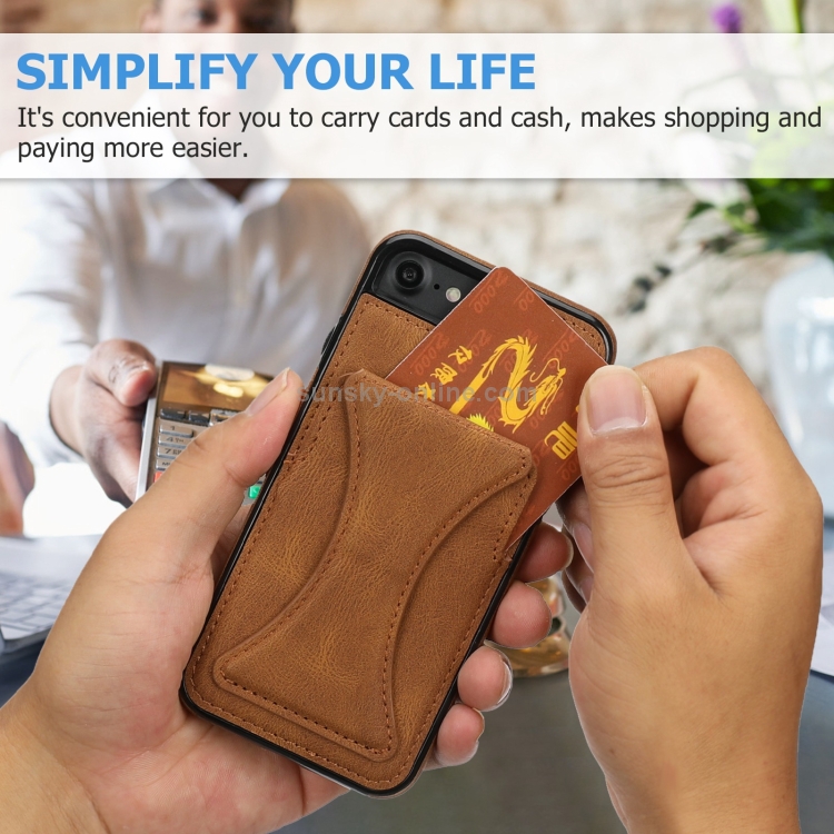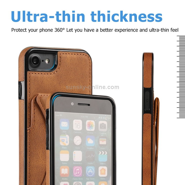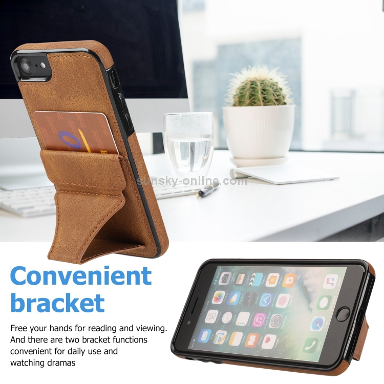 Estuche Protector para iPhone SE 2022 / SE 2020 / 8 / 7 Ultrafino a Prueba de Golpes con Soporte (Marrón)