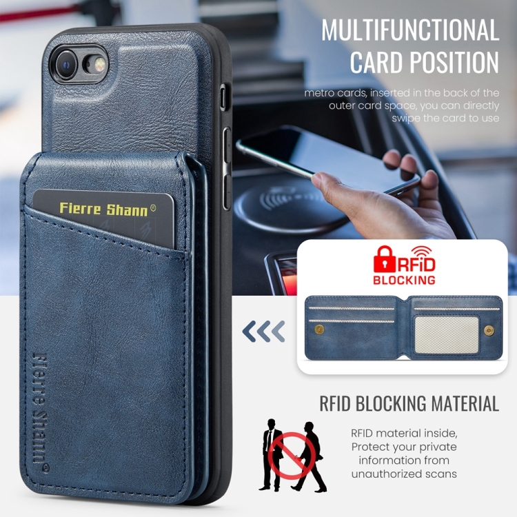For iPhone SE 2022/SE 2020/8/7 Fierre Shann Oil Wax Cowhide Leather Magnetic Card Holder Phone Case (Blue)